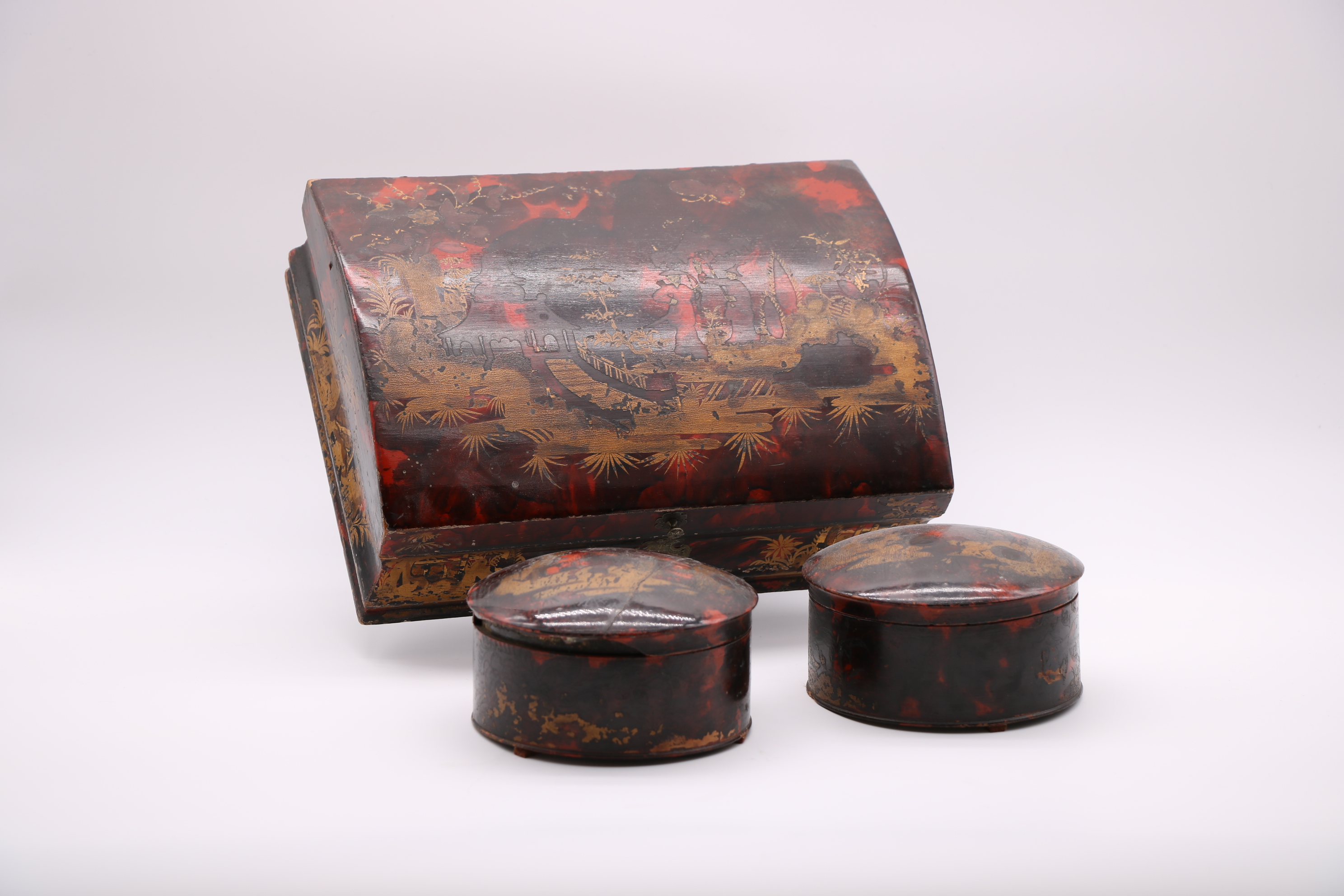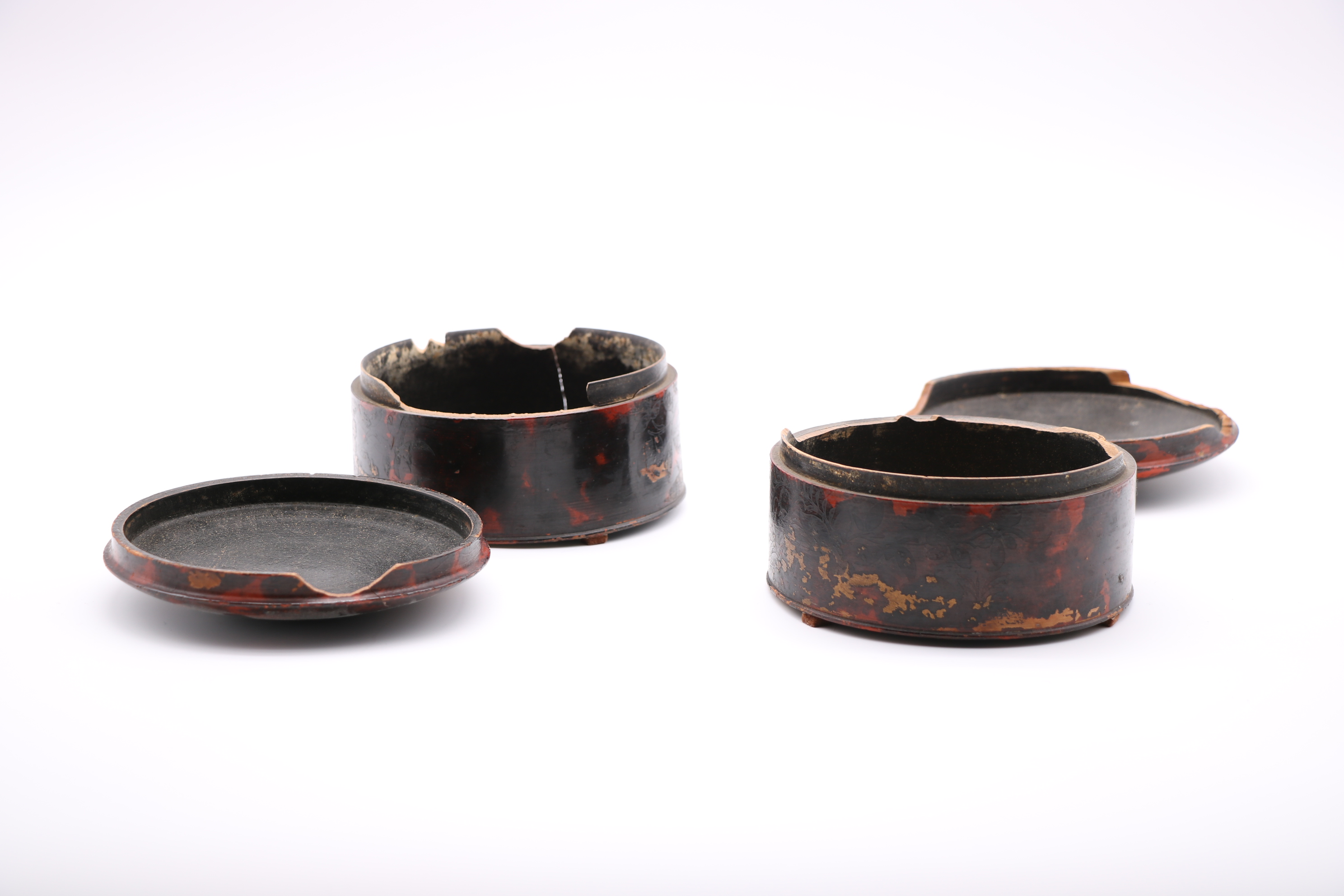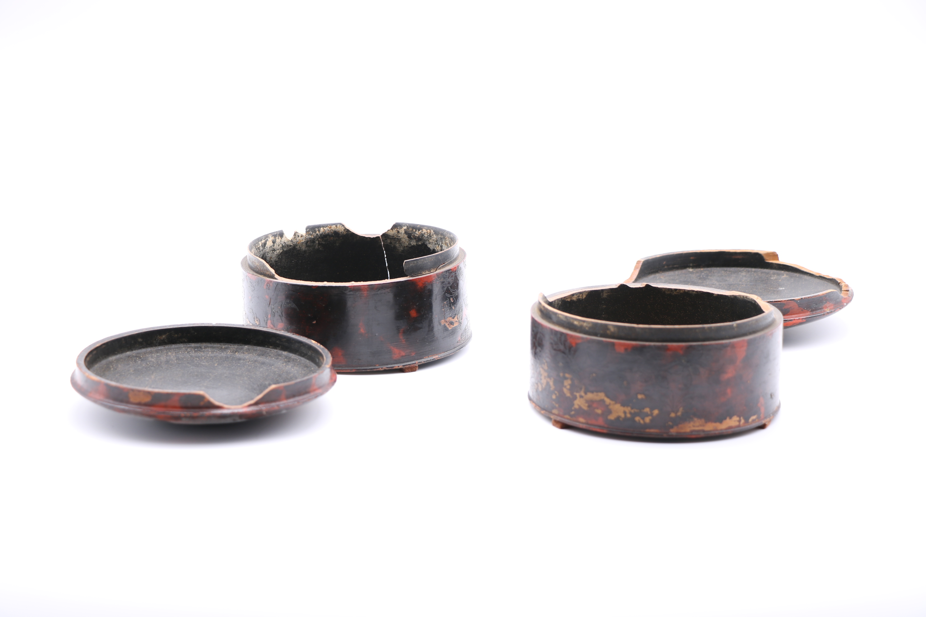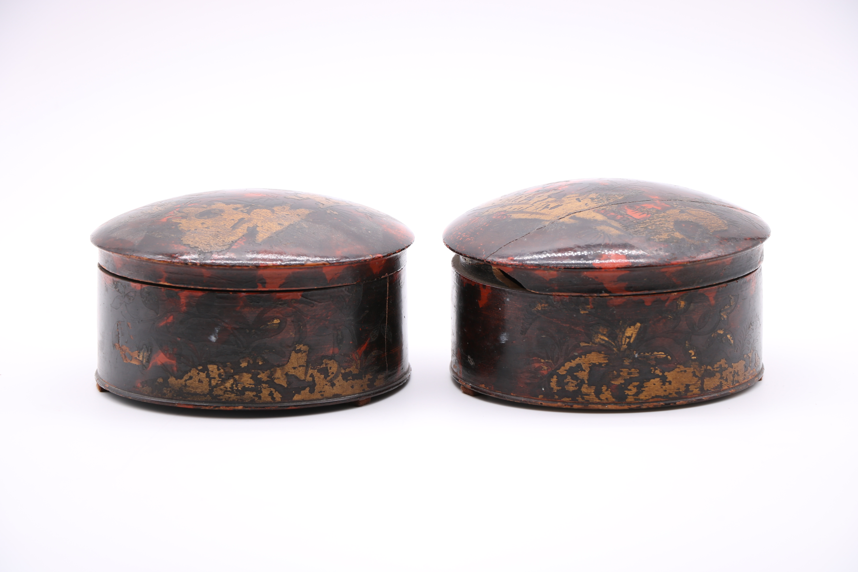 Boîtes à perruques H. 11 x L. 30 x P. 22 cm (grande boîte) H. 7 x D. 13 cm (les boîtes circulaires)