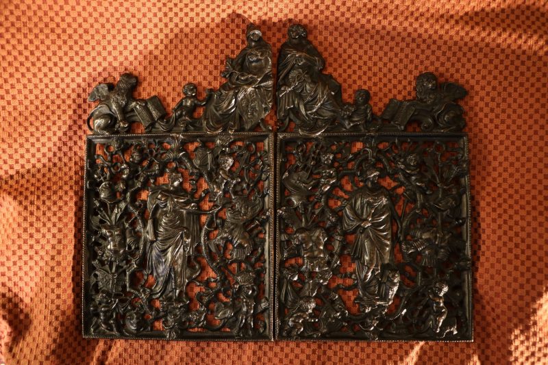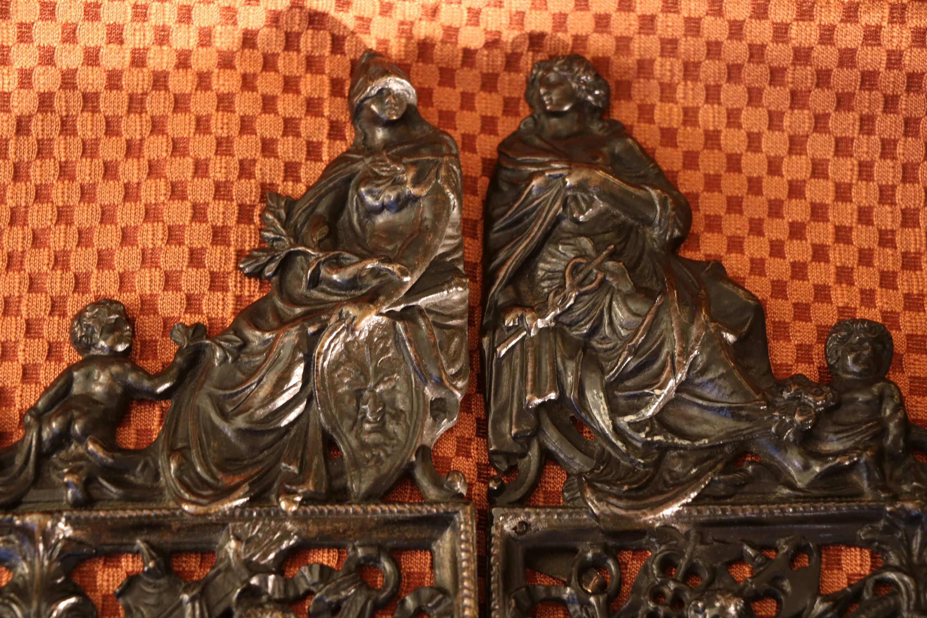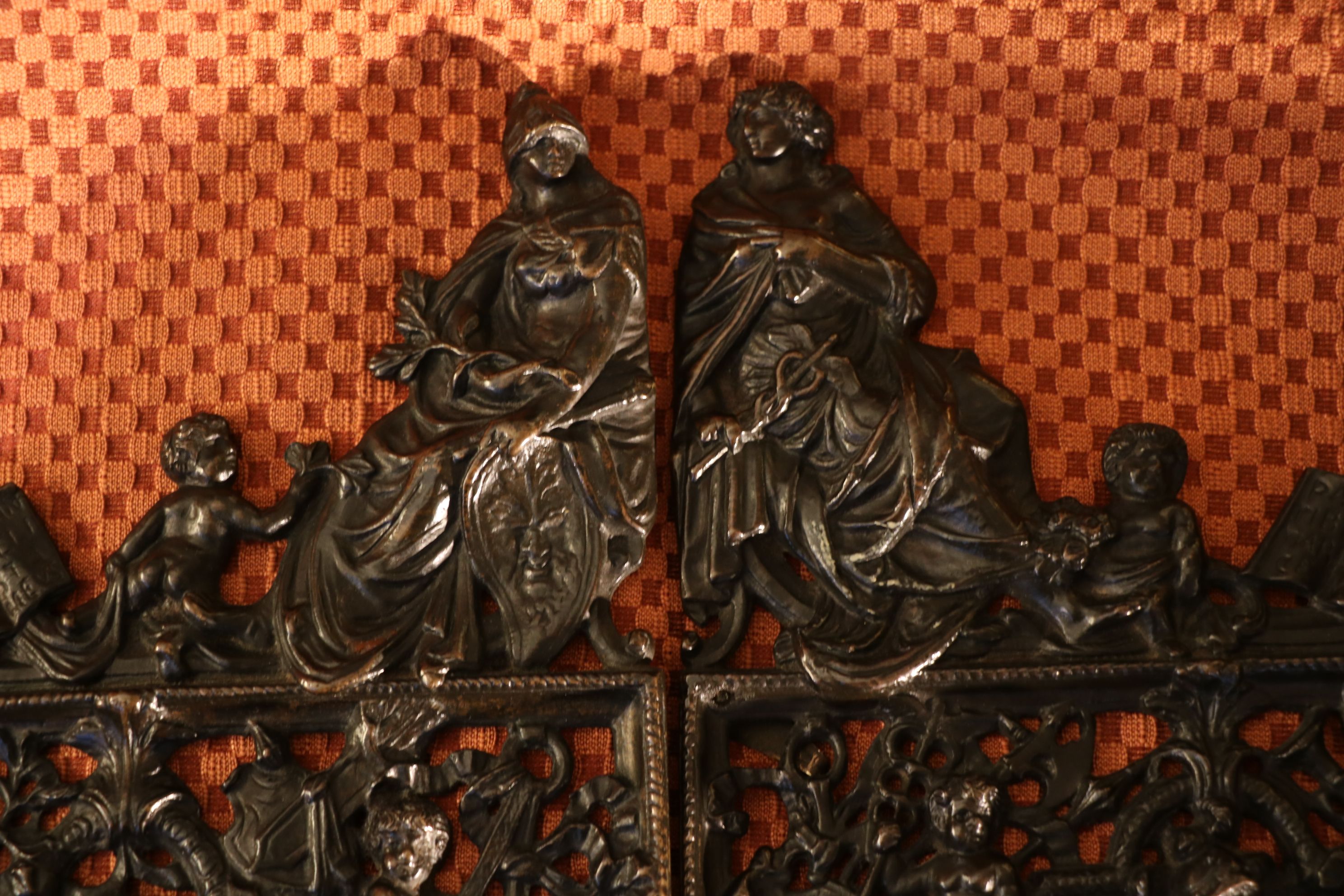 Ensemble de deux grilles en bronze représentant les portes miniatures de la Loggetta de Sansovino à Venise