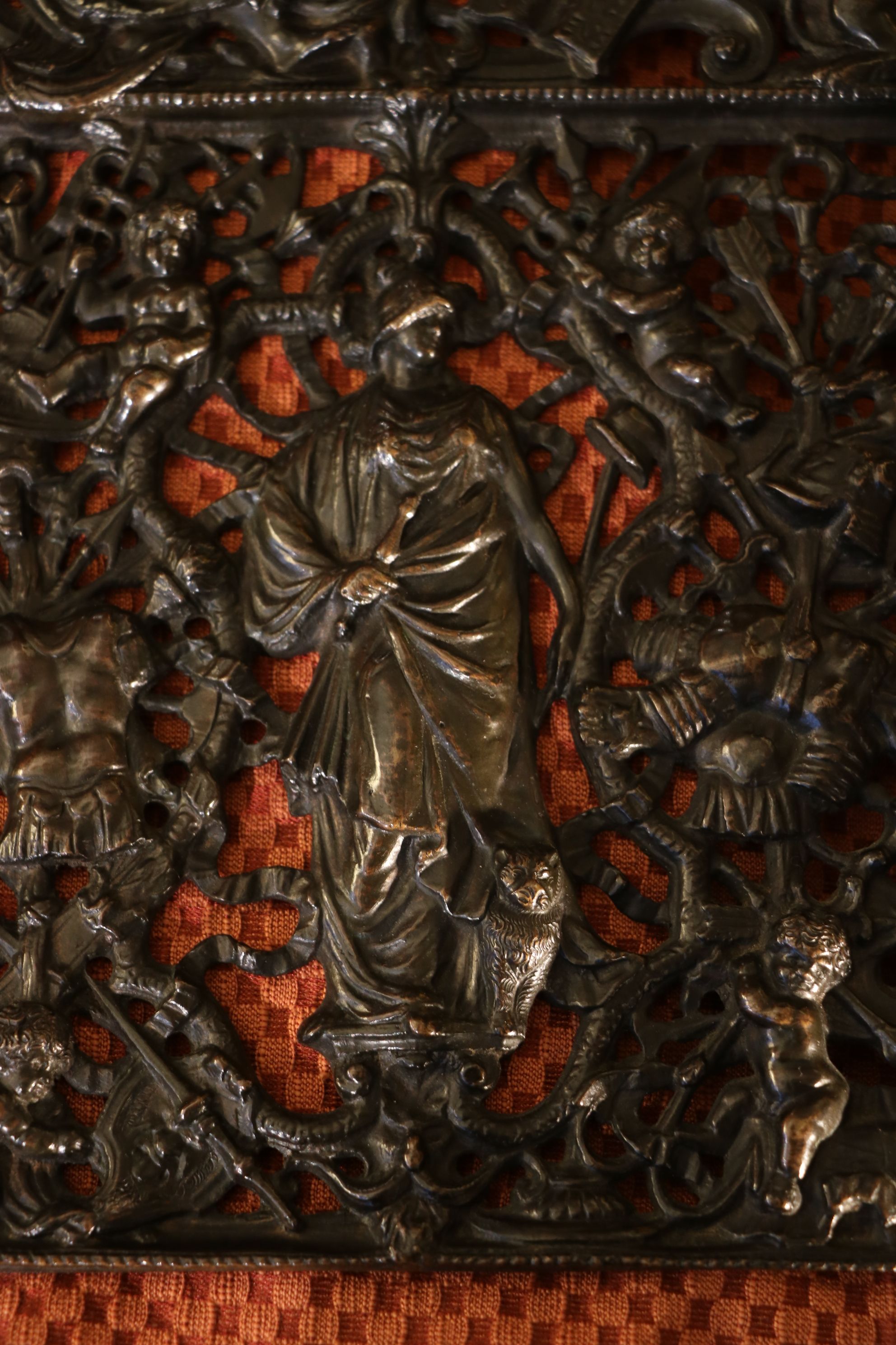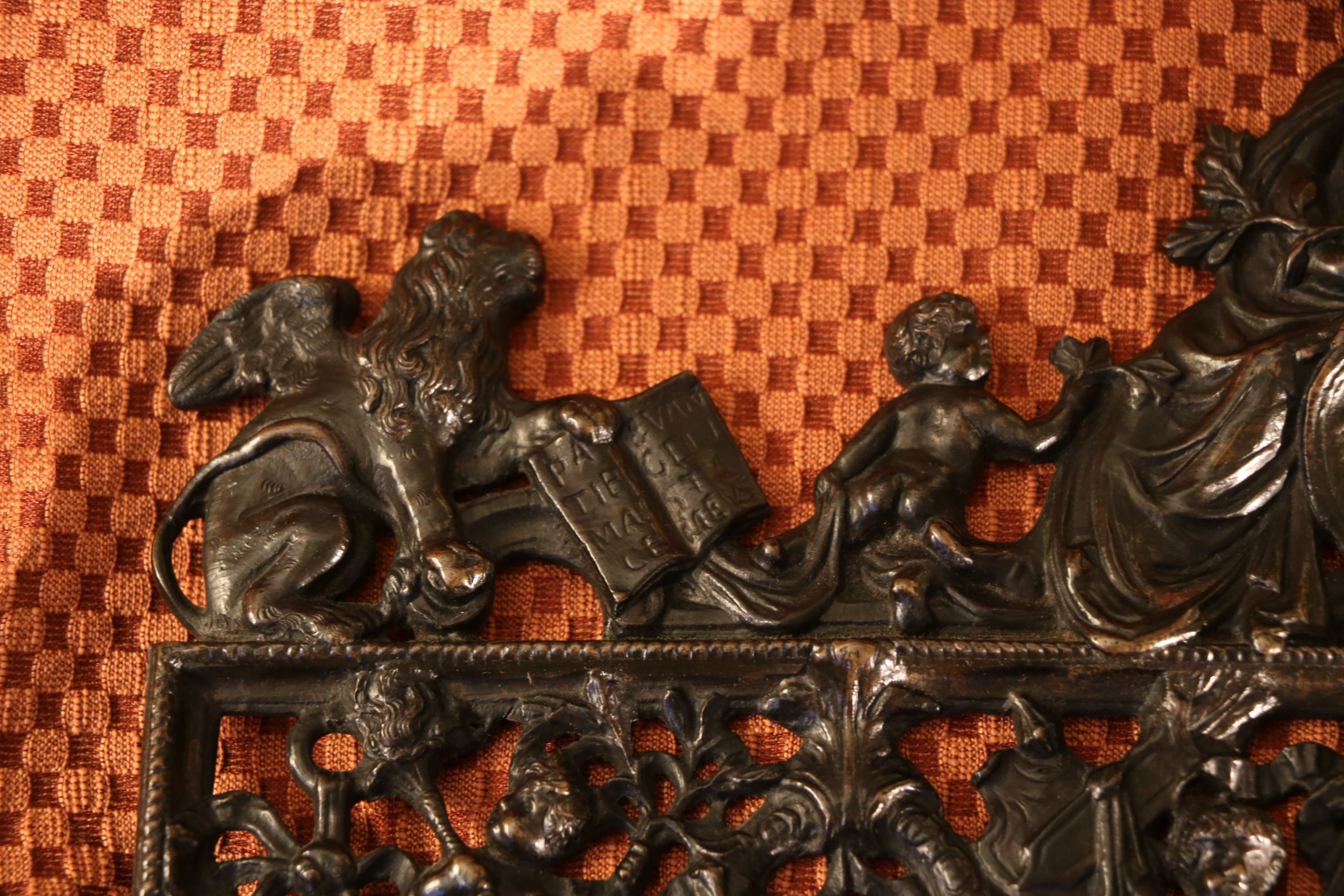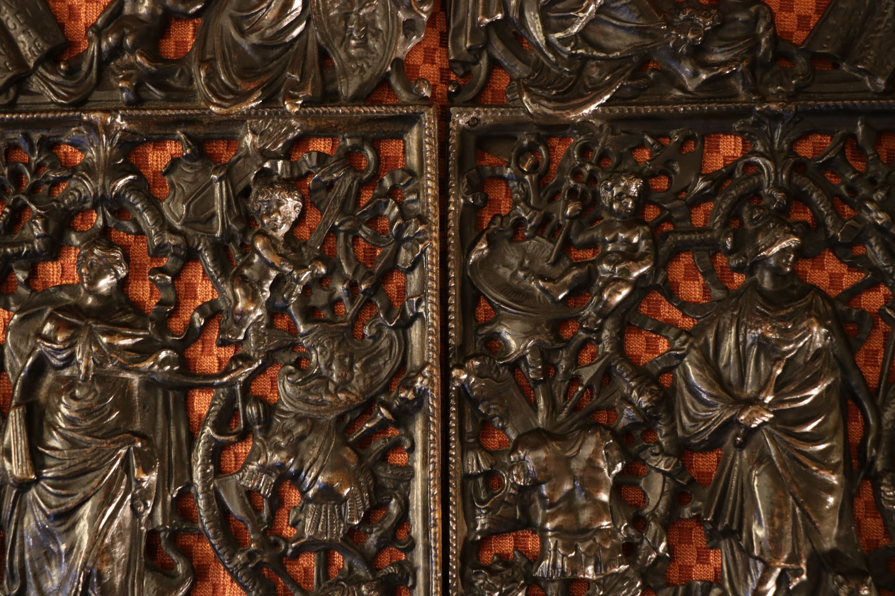 Ensemble de deux grilles en bronze représentant les portes miniatures de la Loggetta de Sansovino à Venise