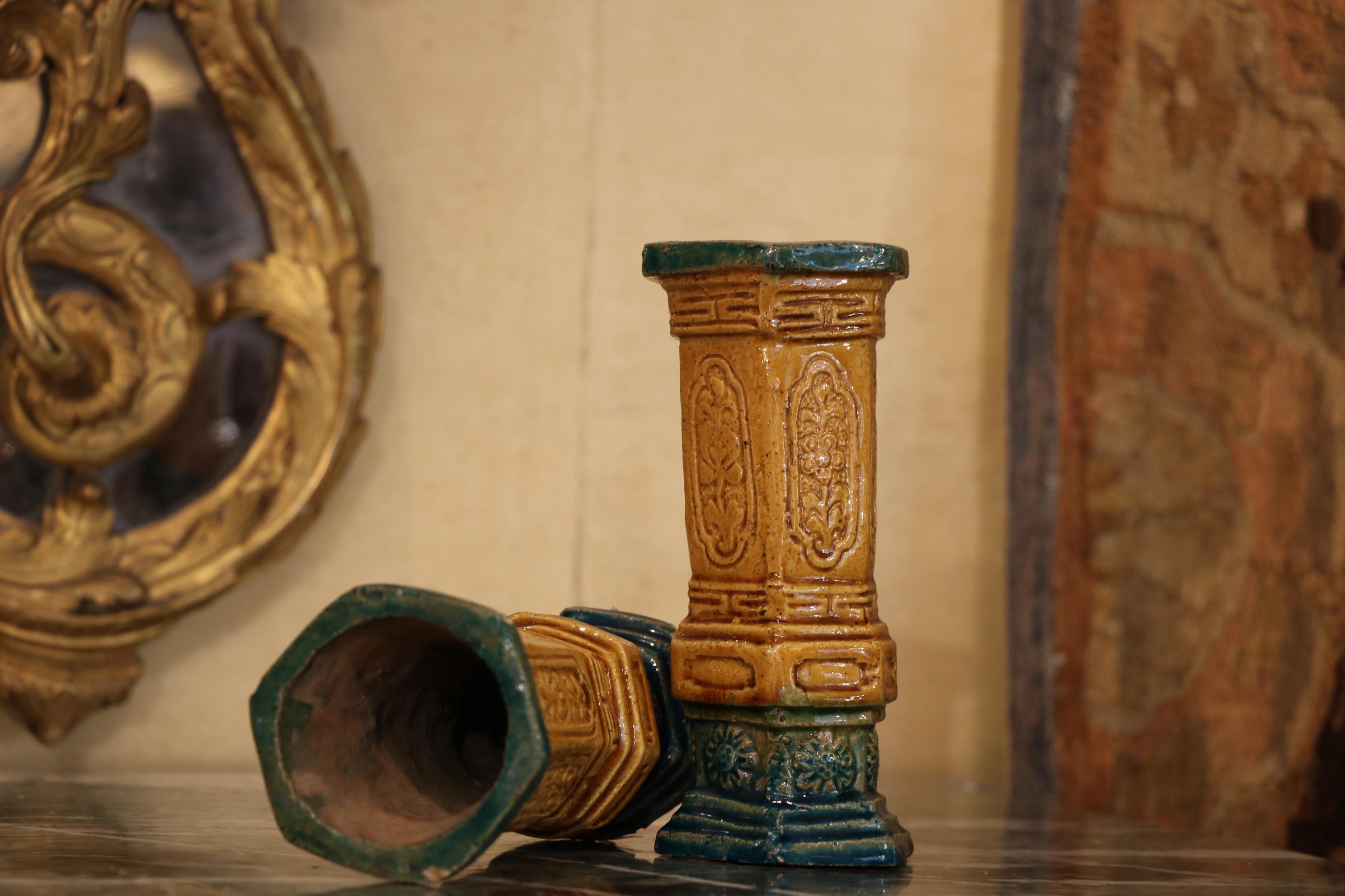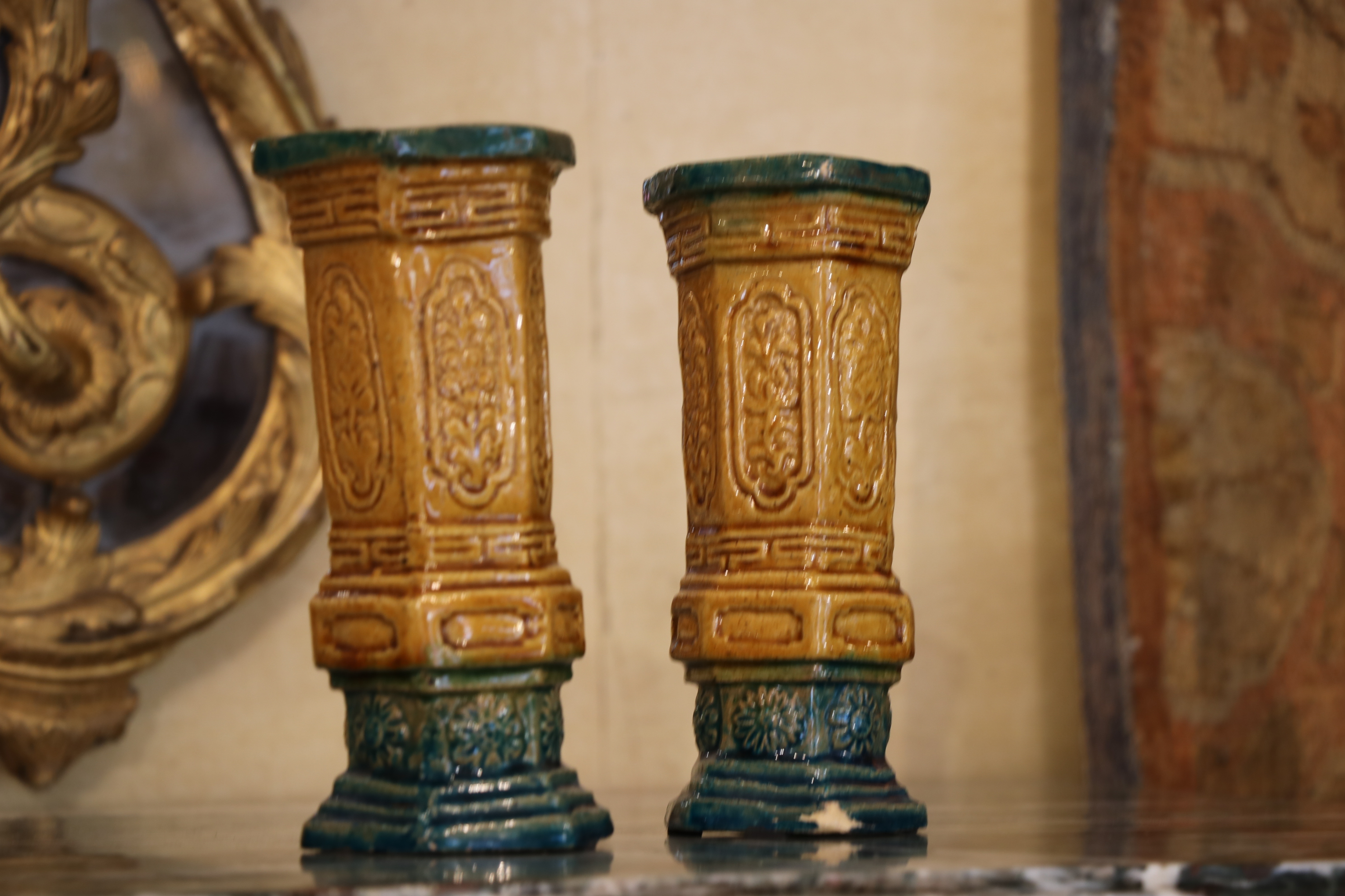 Paire de vase de Chine en terre cuite Epoque XVIIe siècle Restaurations d'usage, quelques éclats H. 18 x L. 8 cm