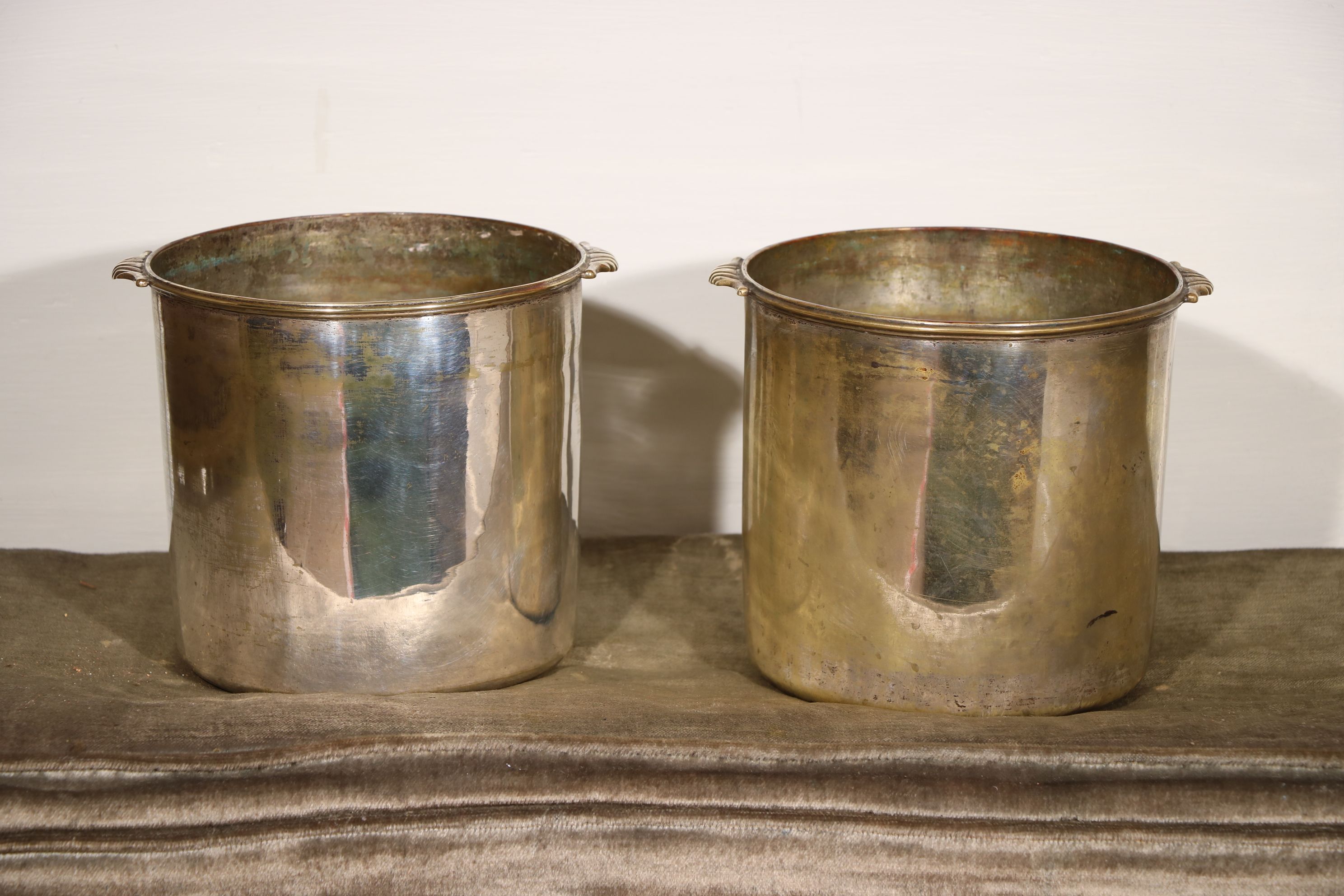 Paire de sceaux à rafraichir en métal argenté Epoque XVIIIe siècle Usures à l’argenture H. 18,5 x D. 18,5 cm