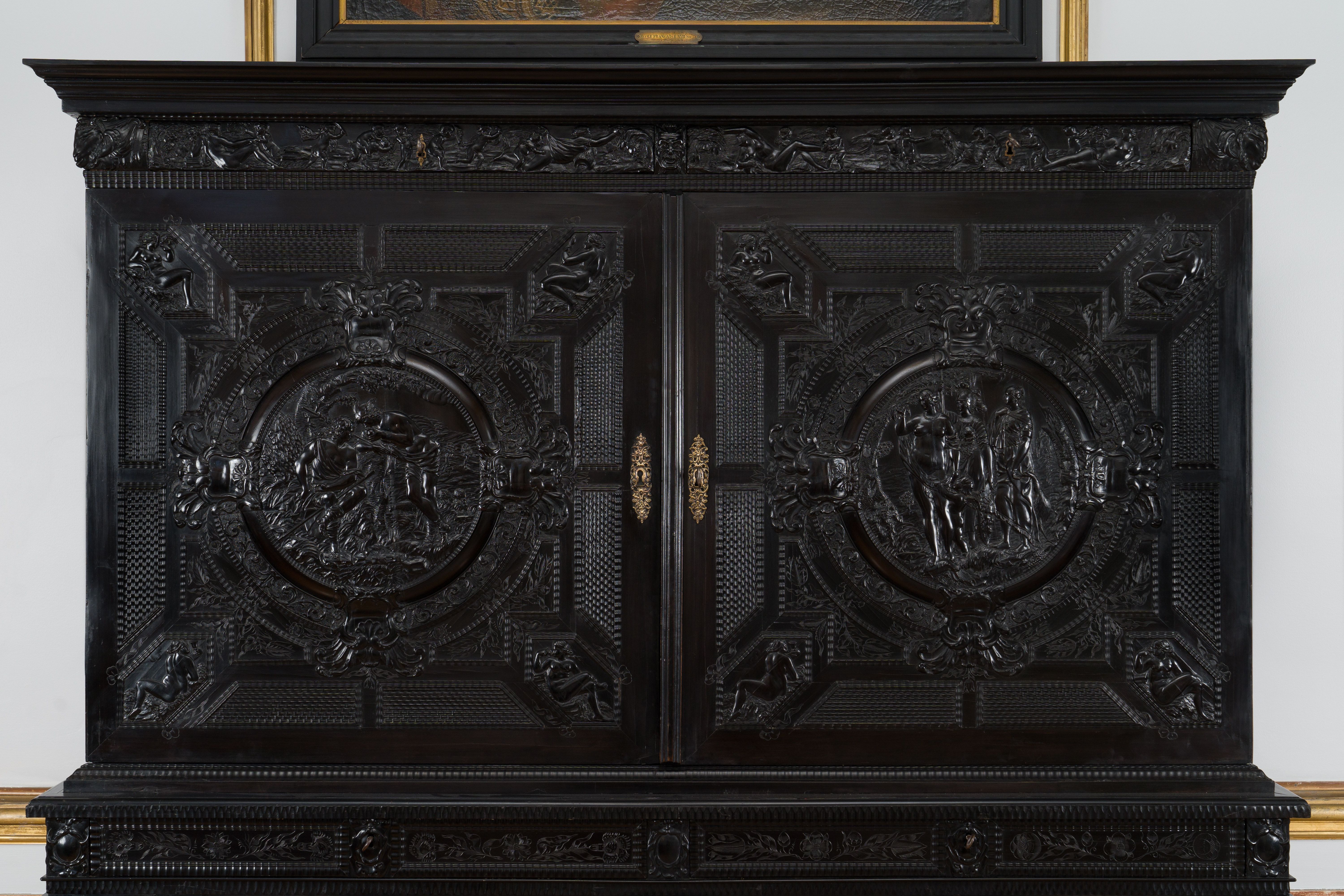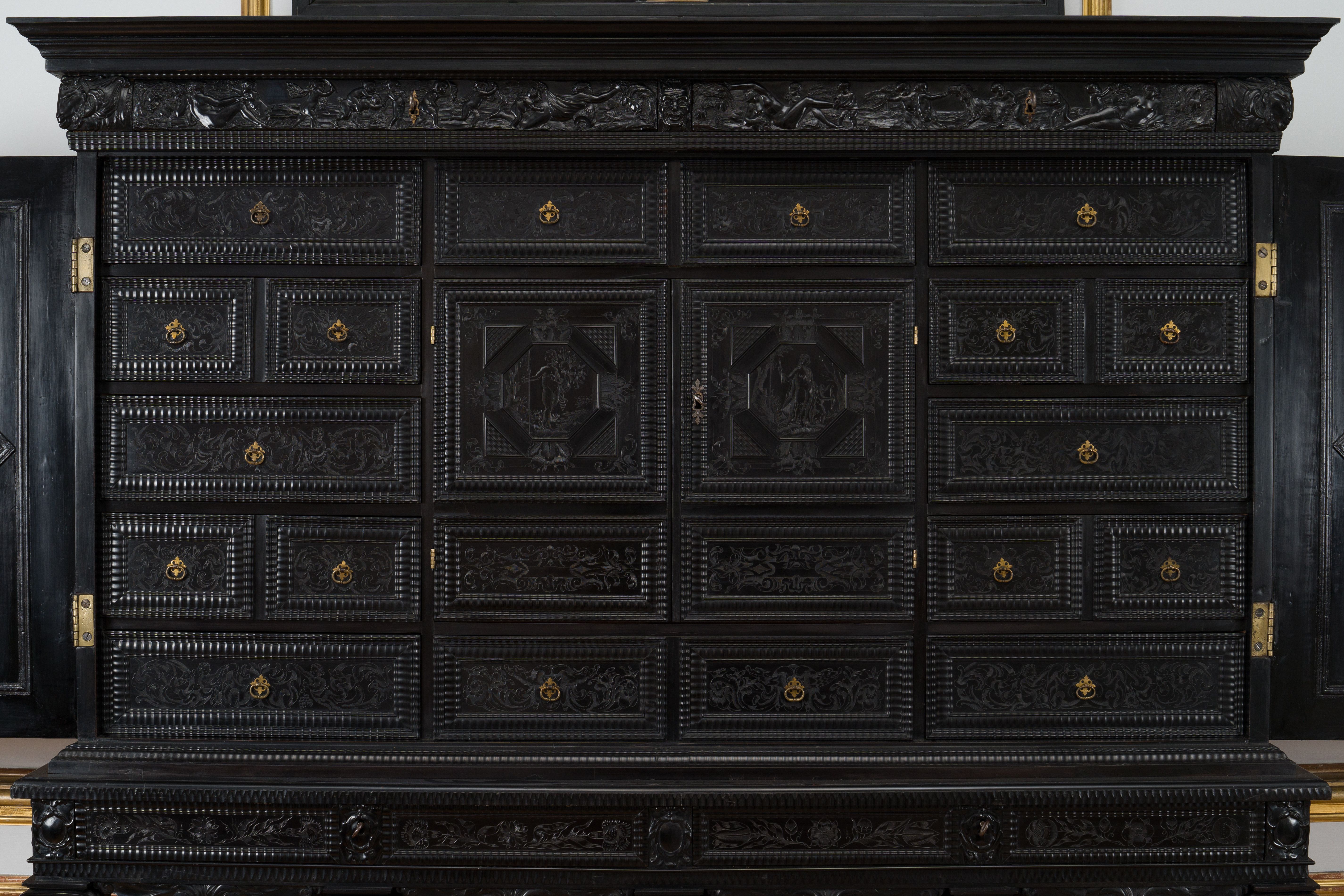 Très rare et impressionnant cabinet en ébène du XVIIe siècle