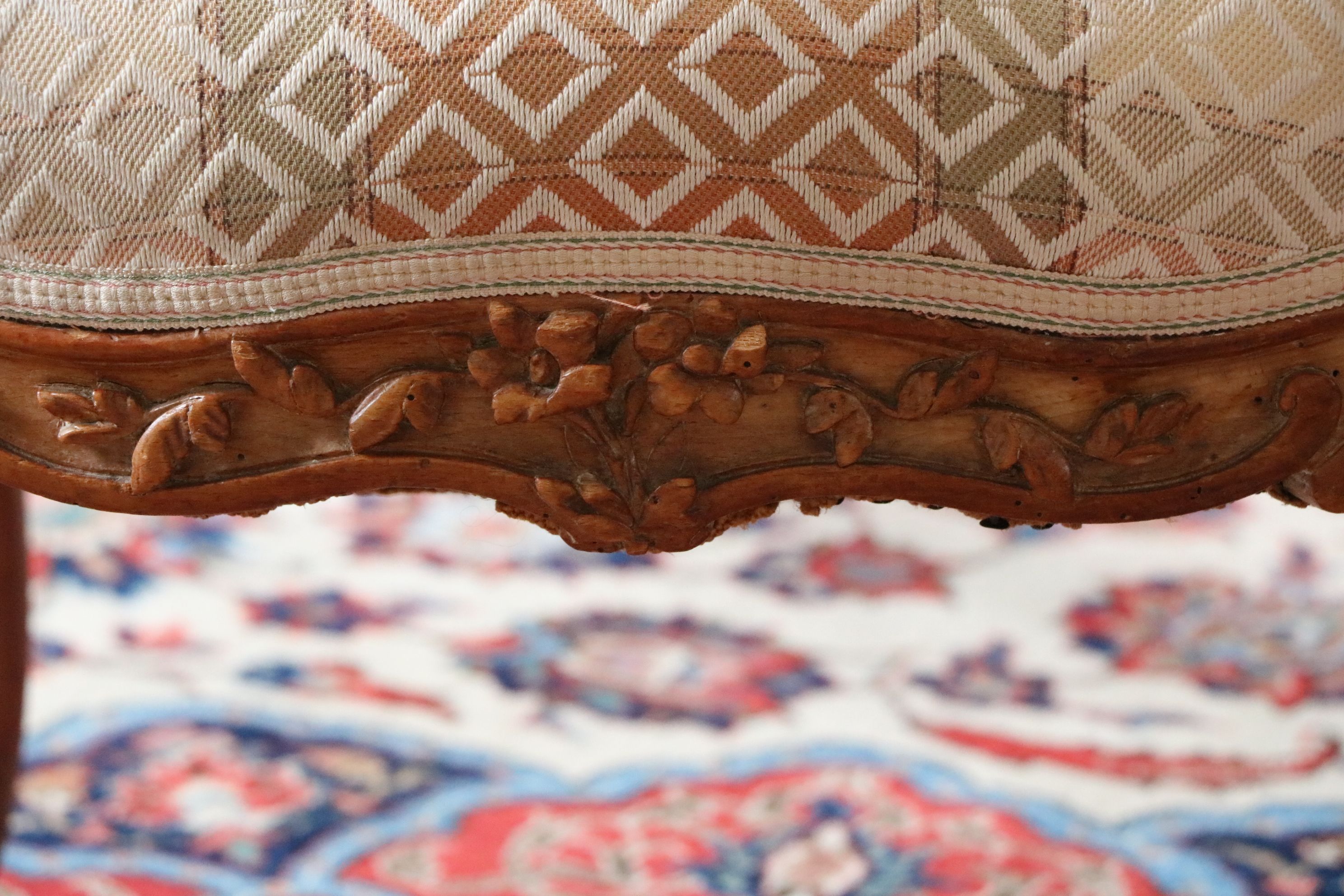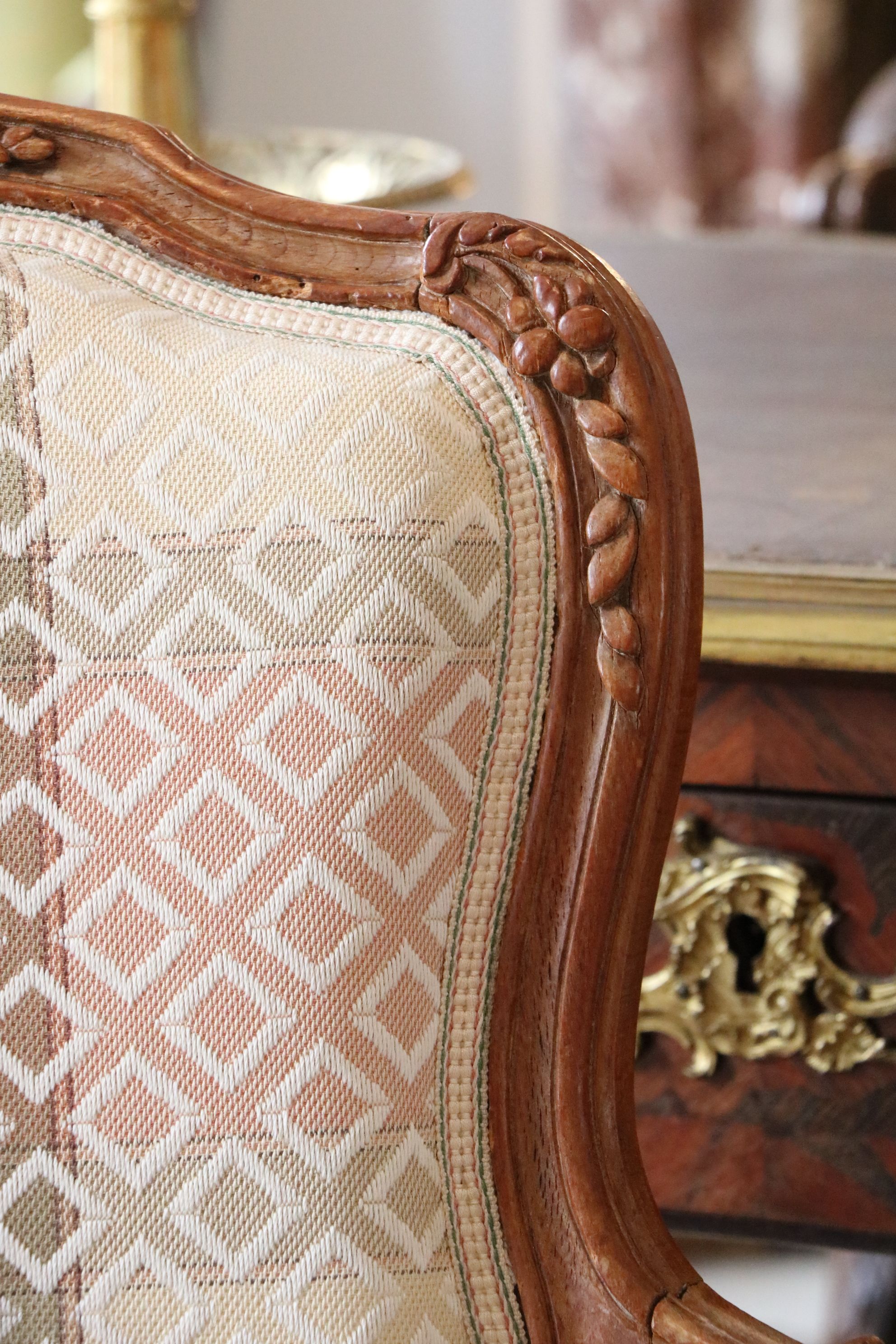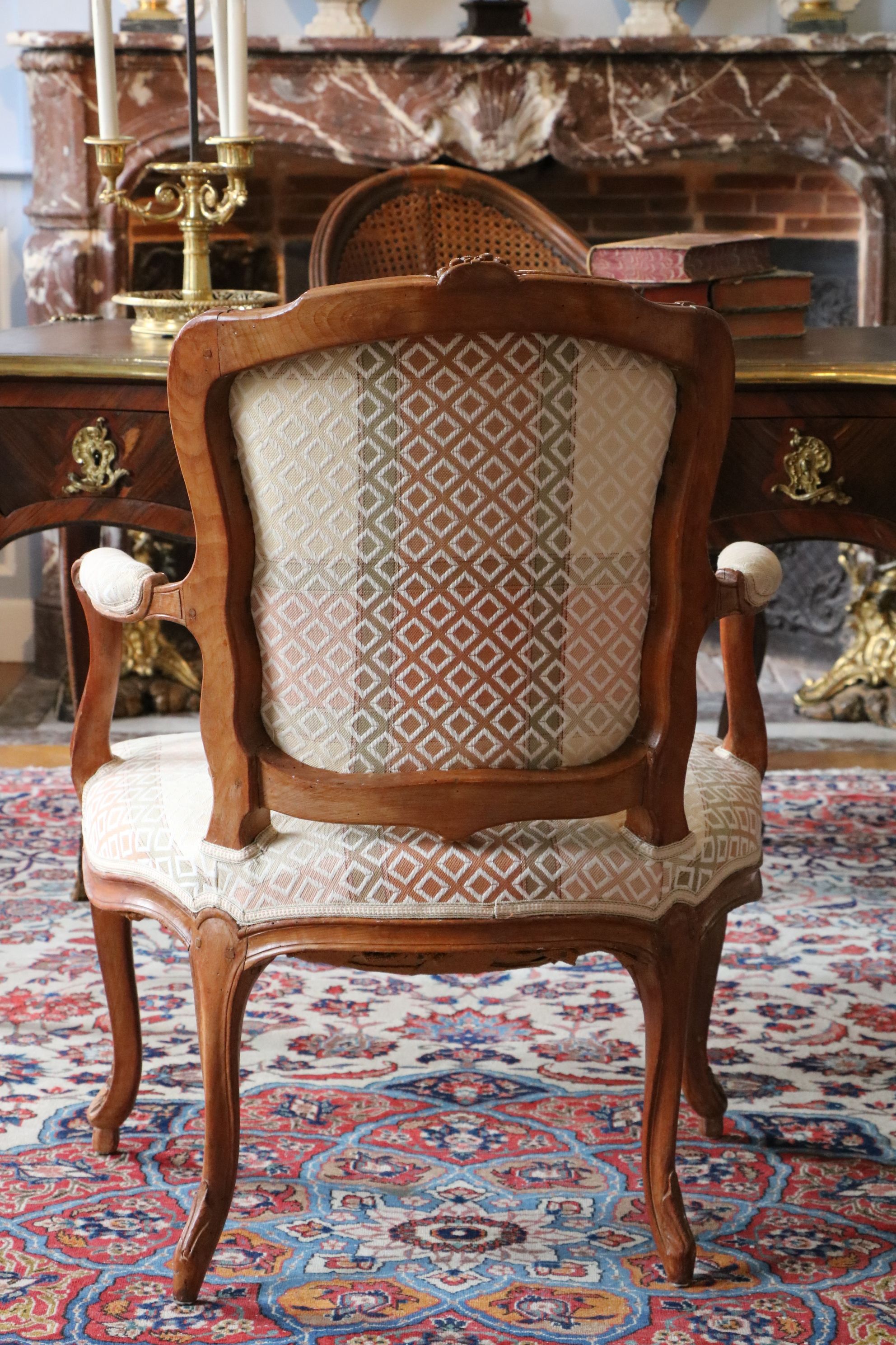 Paire de fauteuils en bois naturel mouluré et sculpté de forme mouvementée. Reposant sur quatre pieds galbés, ces fauteuils sont très finement sculptés de feuillages et fleurs sur les traverses de l’assise, les montants et traverses du dossier. Les consoles d’accotoir sont en coup de fouet. Estampillée Bauve Epoque Louis XV Restaurations d’usage, garniture moderne H. 86 x L. 62 x P. 50 cm Mathieu Bauve ou Debauve est un menuisier devenu maître en 1754. Décédé vers 1786, sa veuve continuera quelques temps son travail. Il réalise en majorité des ouvrages Louis XV pour lequel il excelle. Ces sièges-ci sont de très bonne qualité tel que l’écrit Pierre Kjellberg dans le livre « Le mobilier français du XVIIIe siècle ». Notre paire de fauteuils témoigne en effet du talent de l’artiste qui a conçu des sculptures d’une grande profondeur.