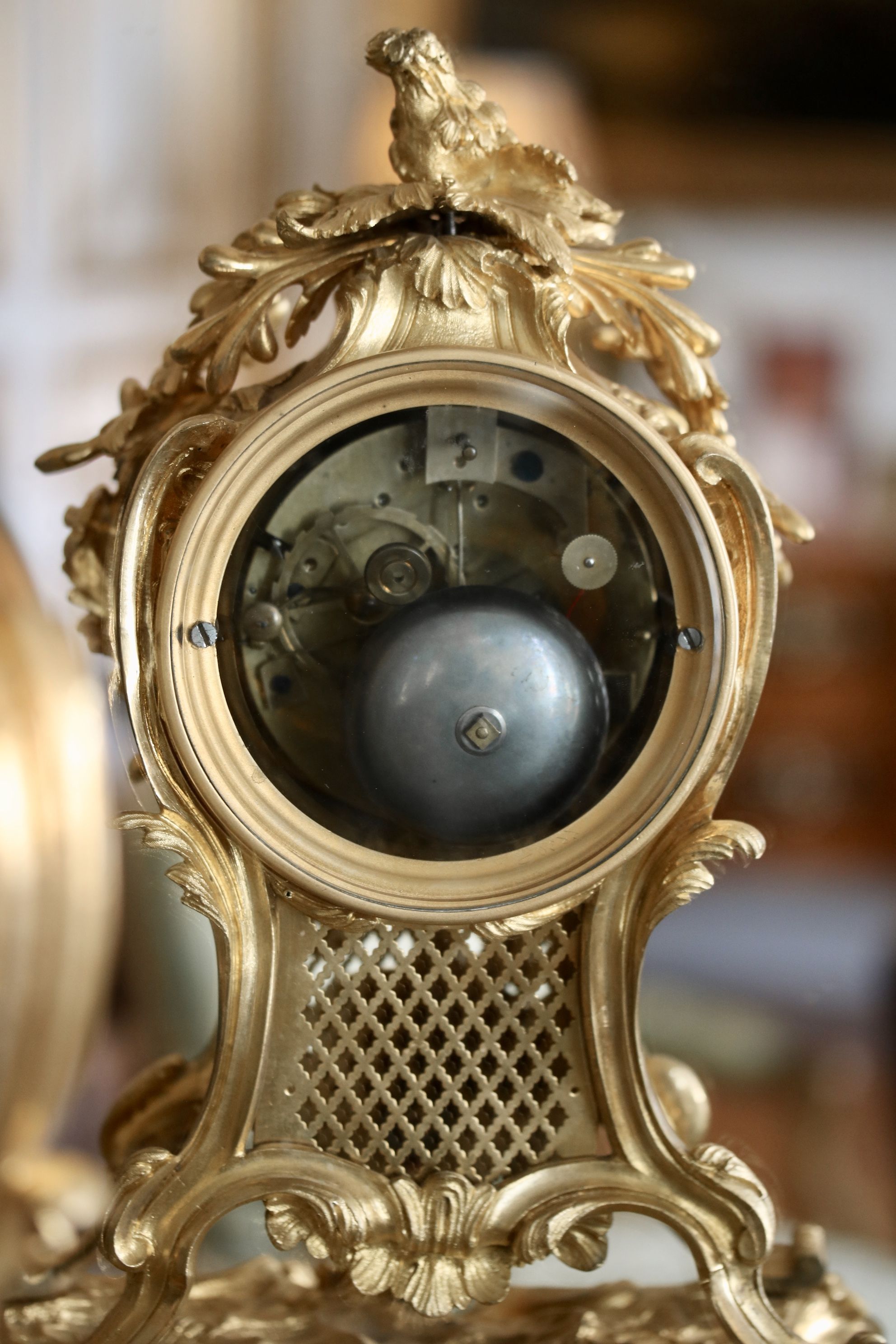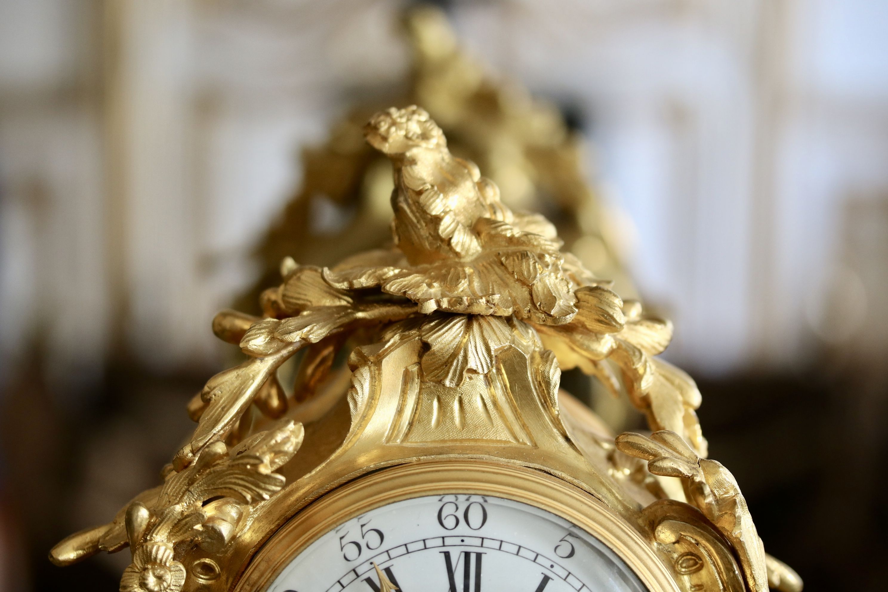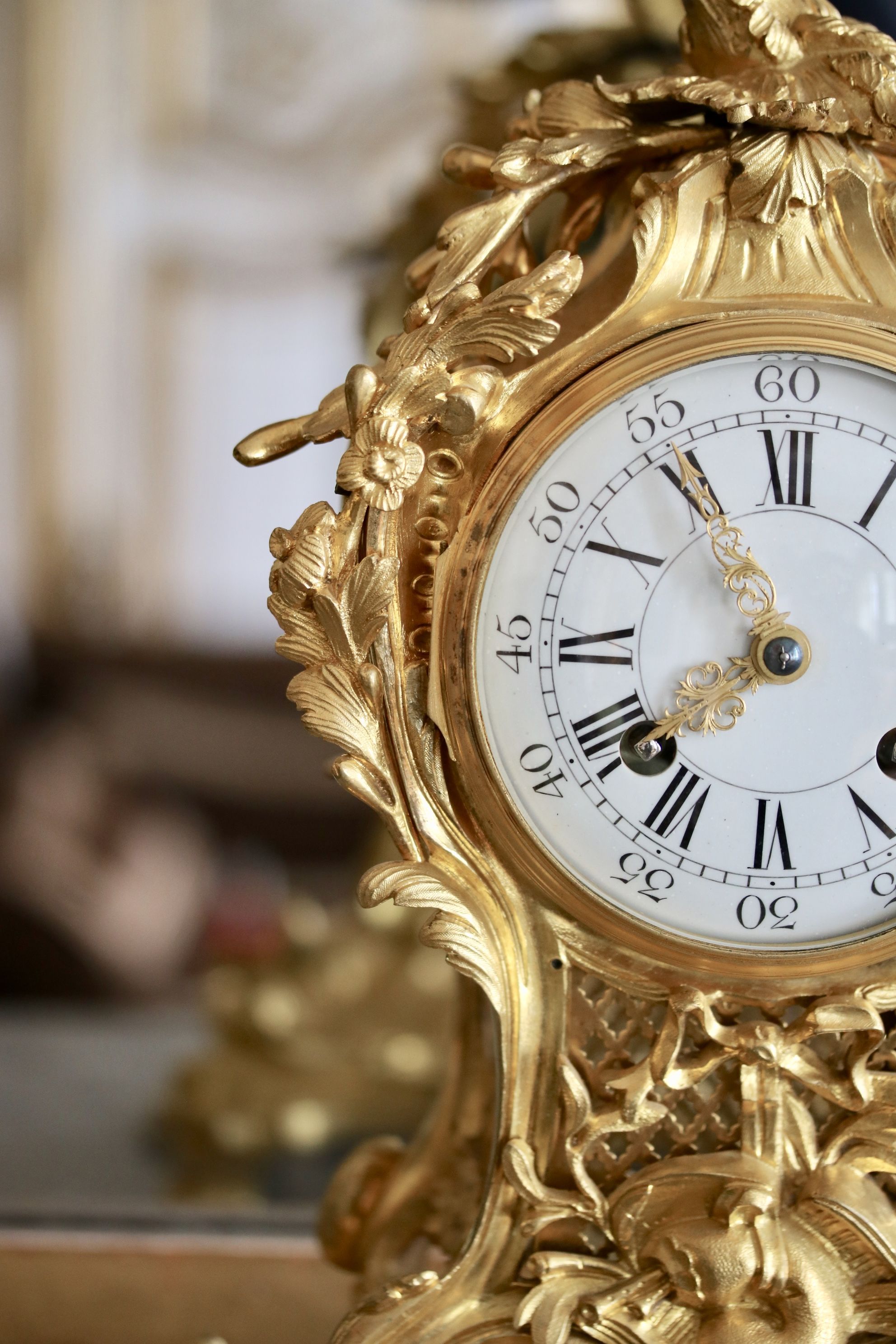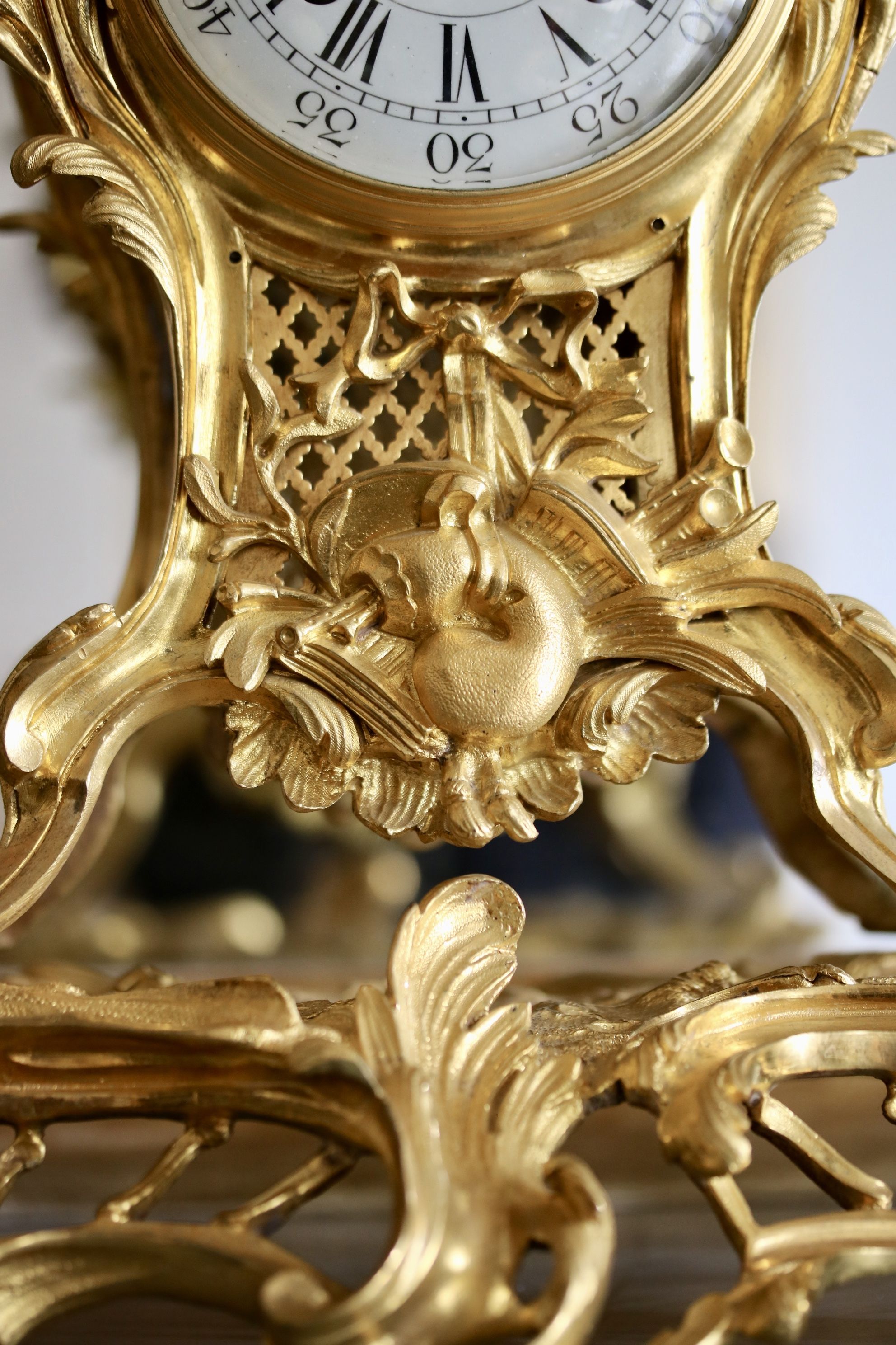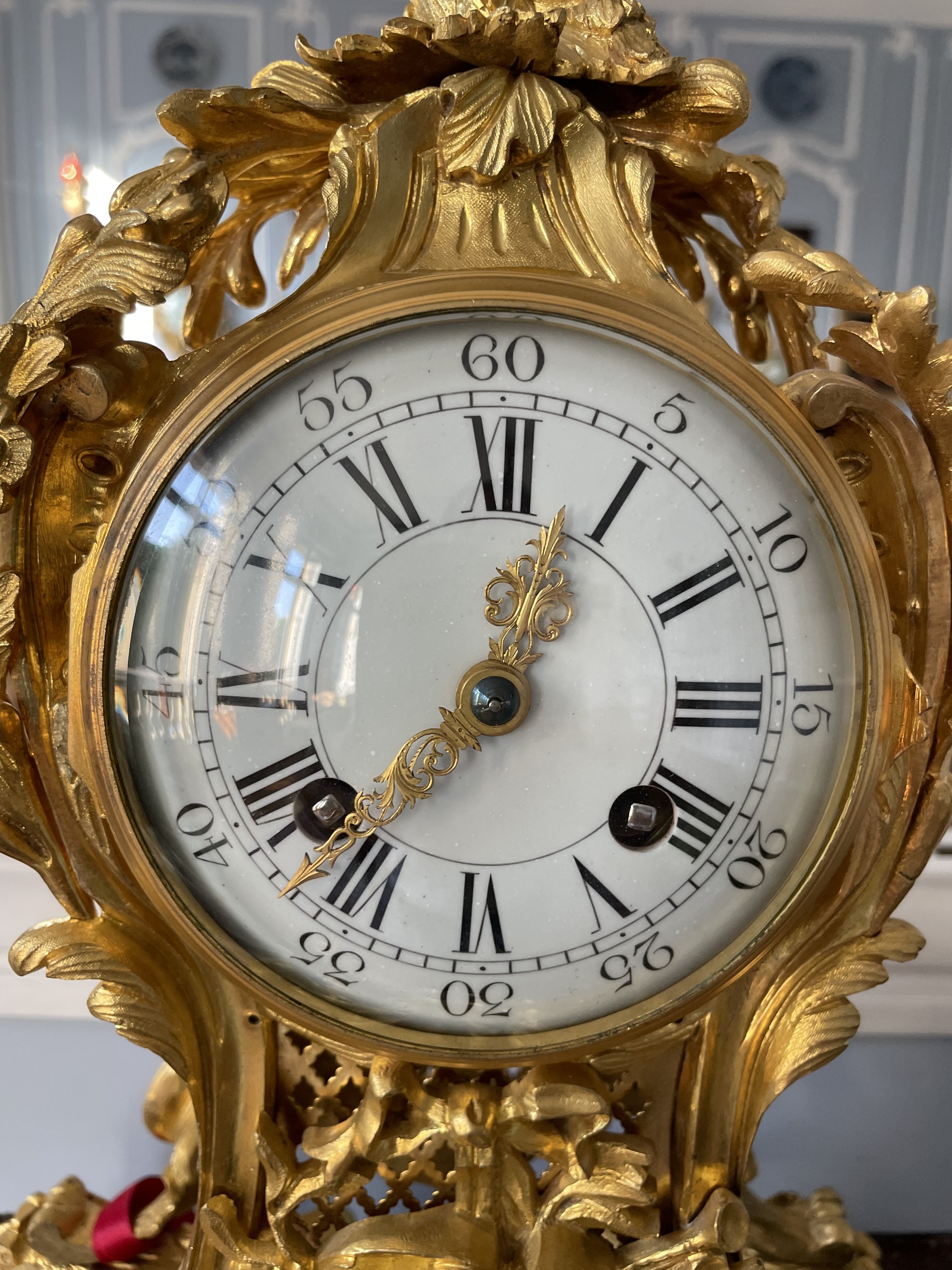 Une pendule en bronze doré et ciselé d'époque Louis XV