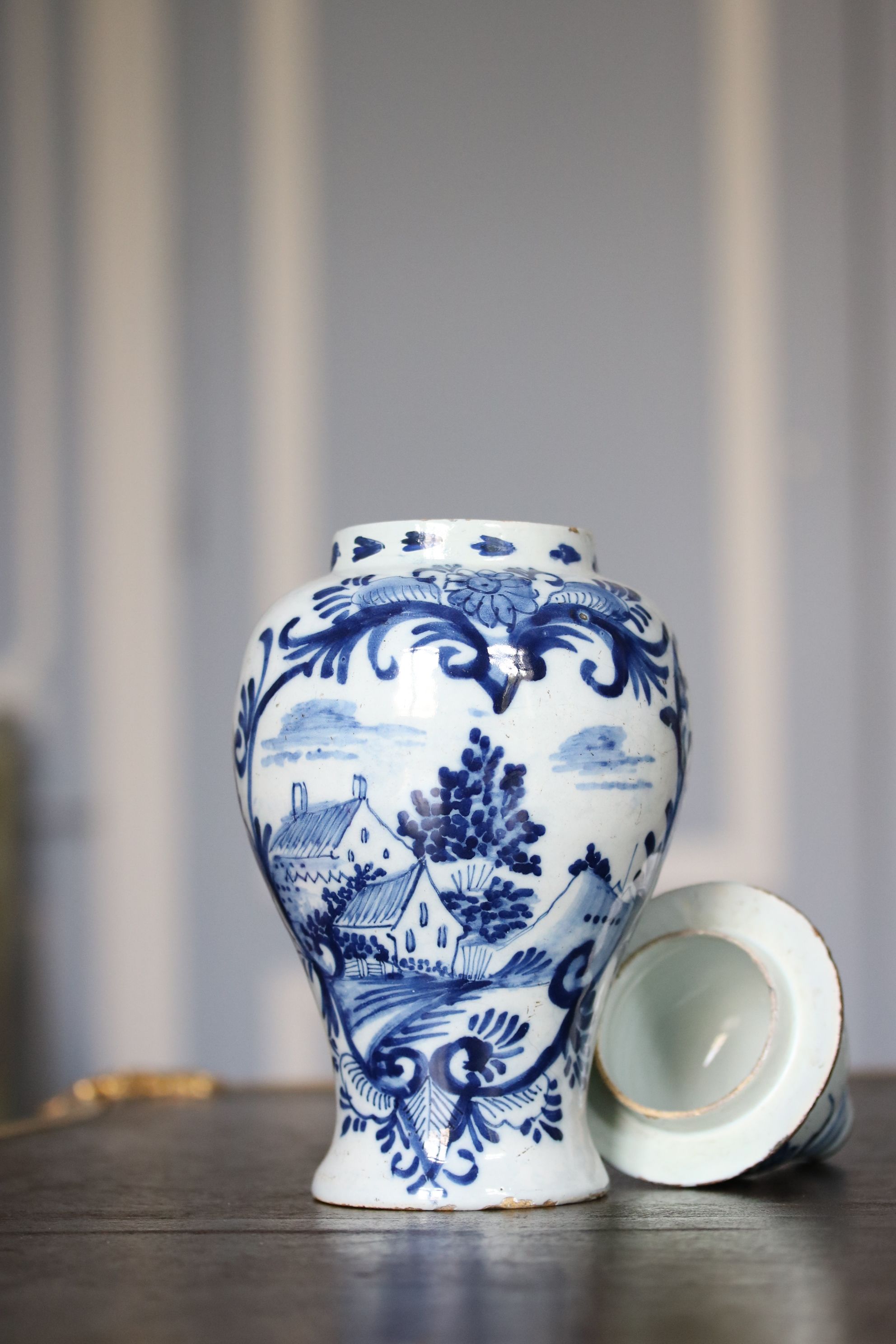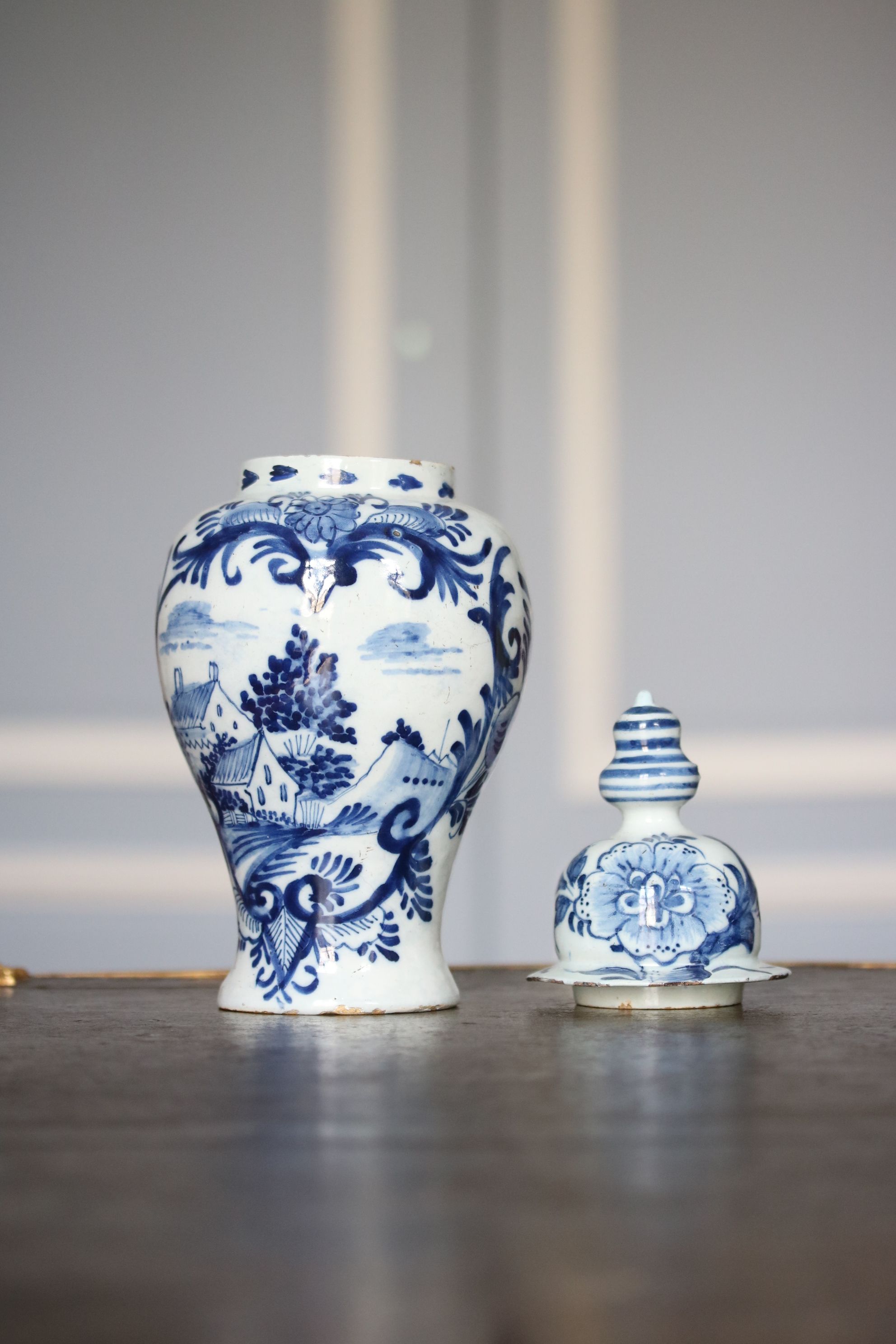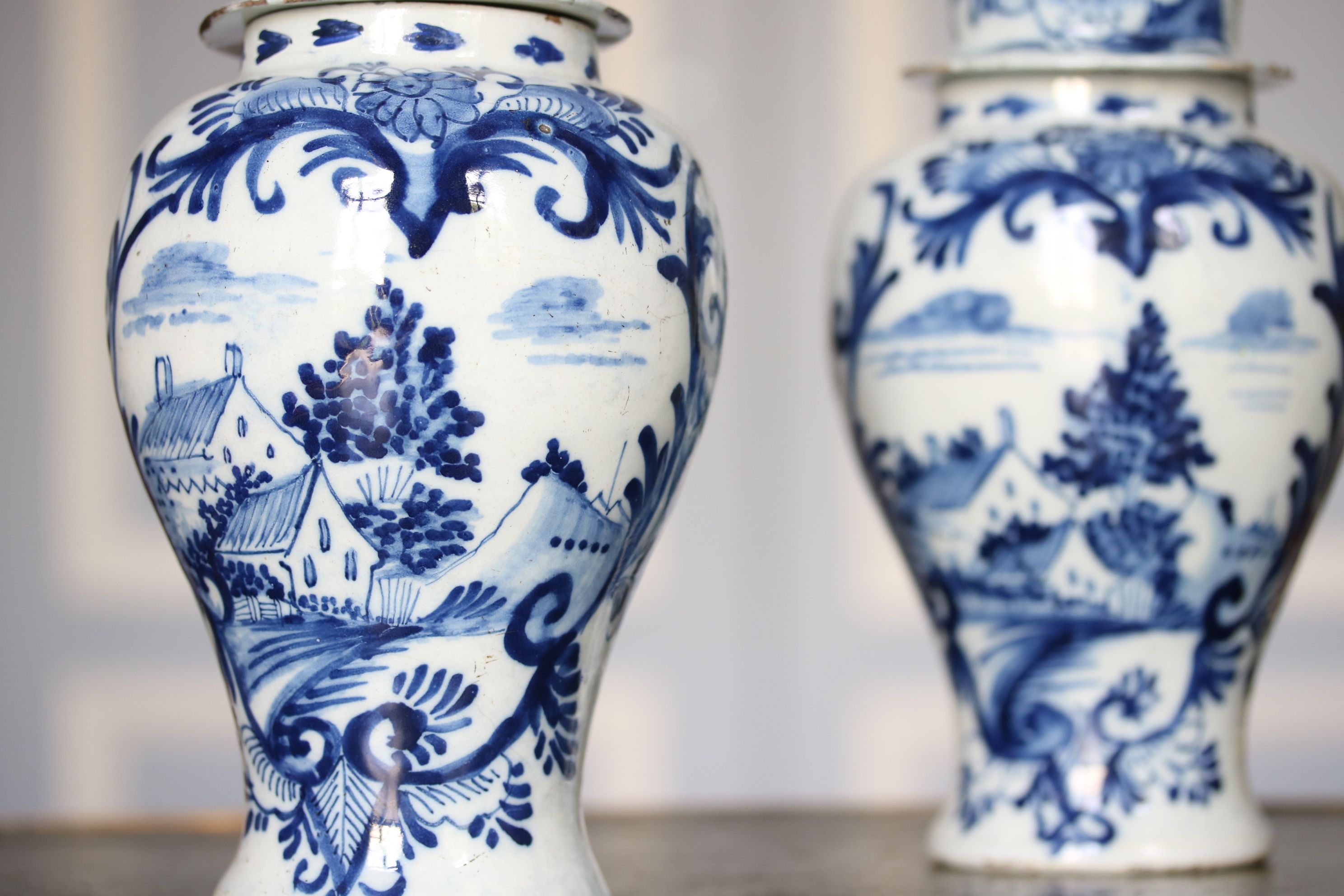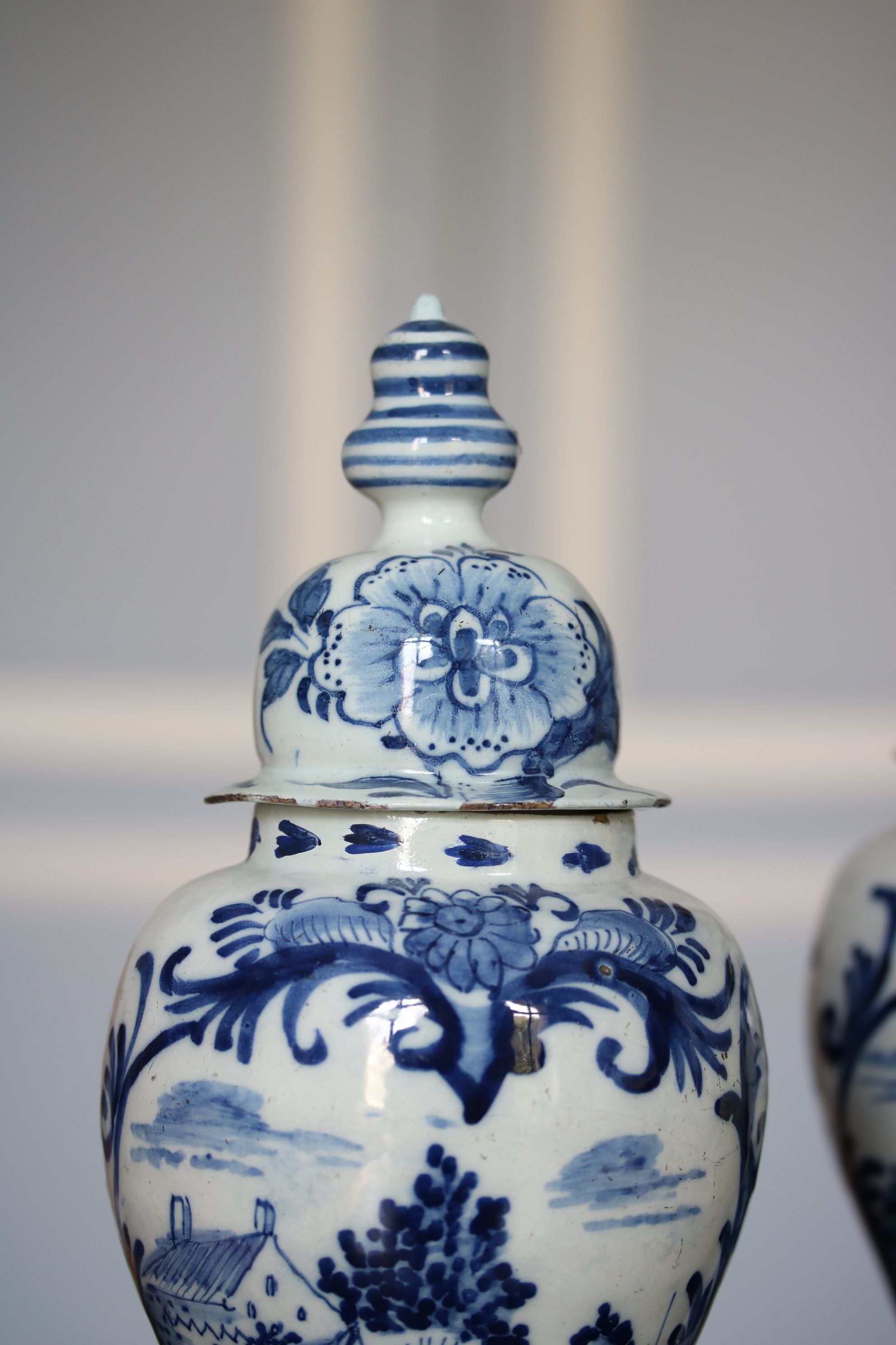Paire de vases en faïence de Delft Epoque XVIIIe siècle Restaurations d’usage H. 29 cm