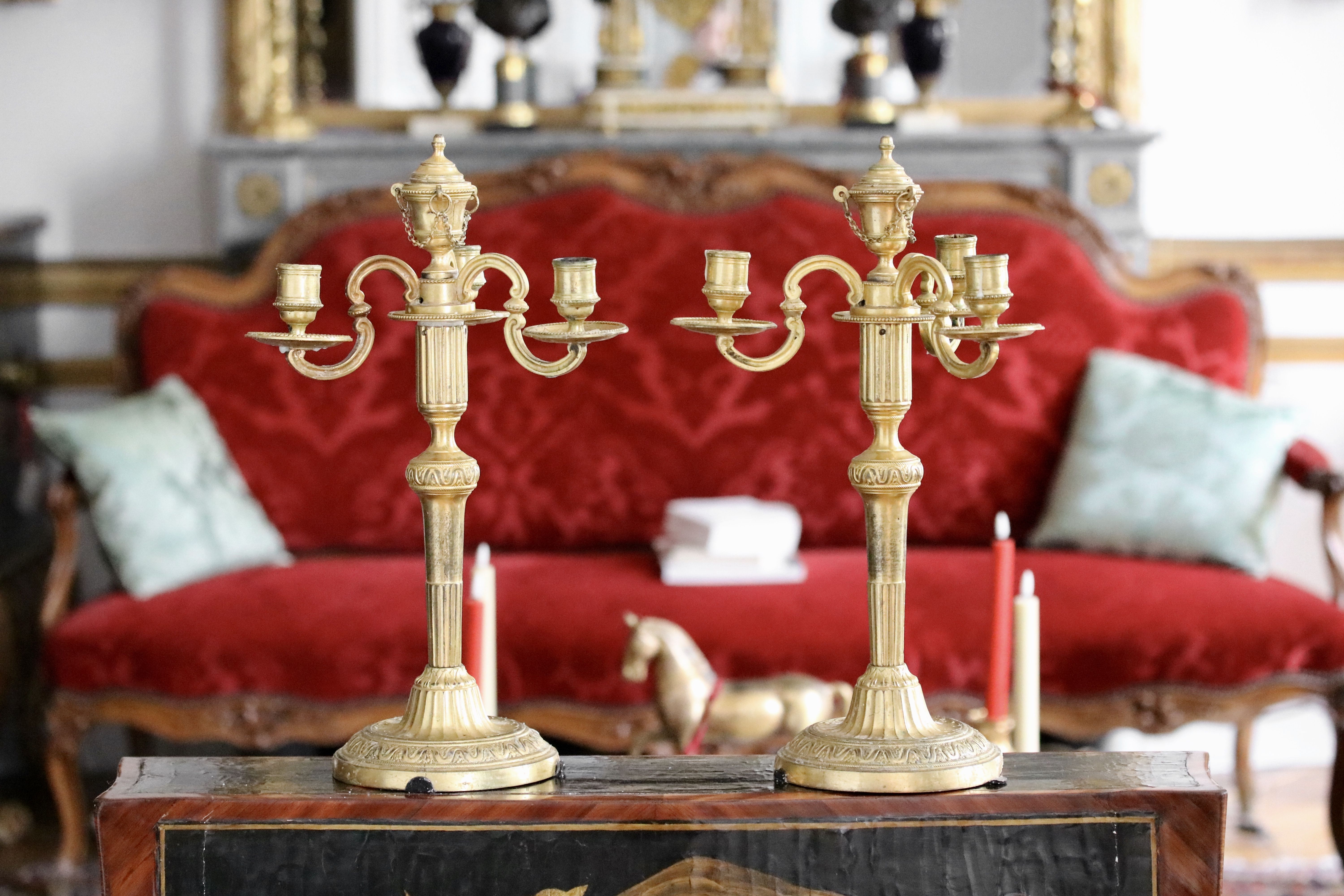 Paire de candélabres en bronze doré