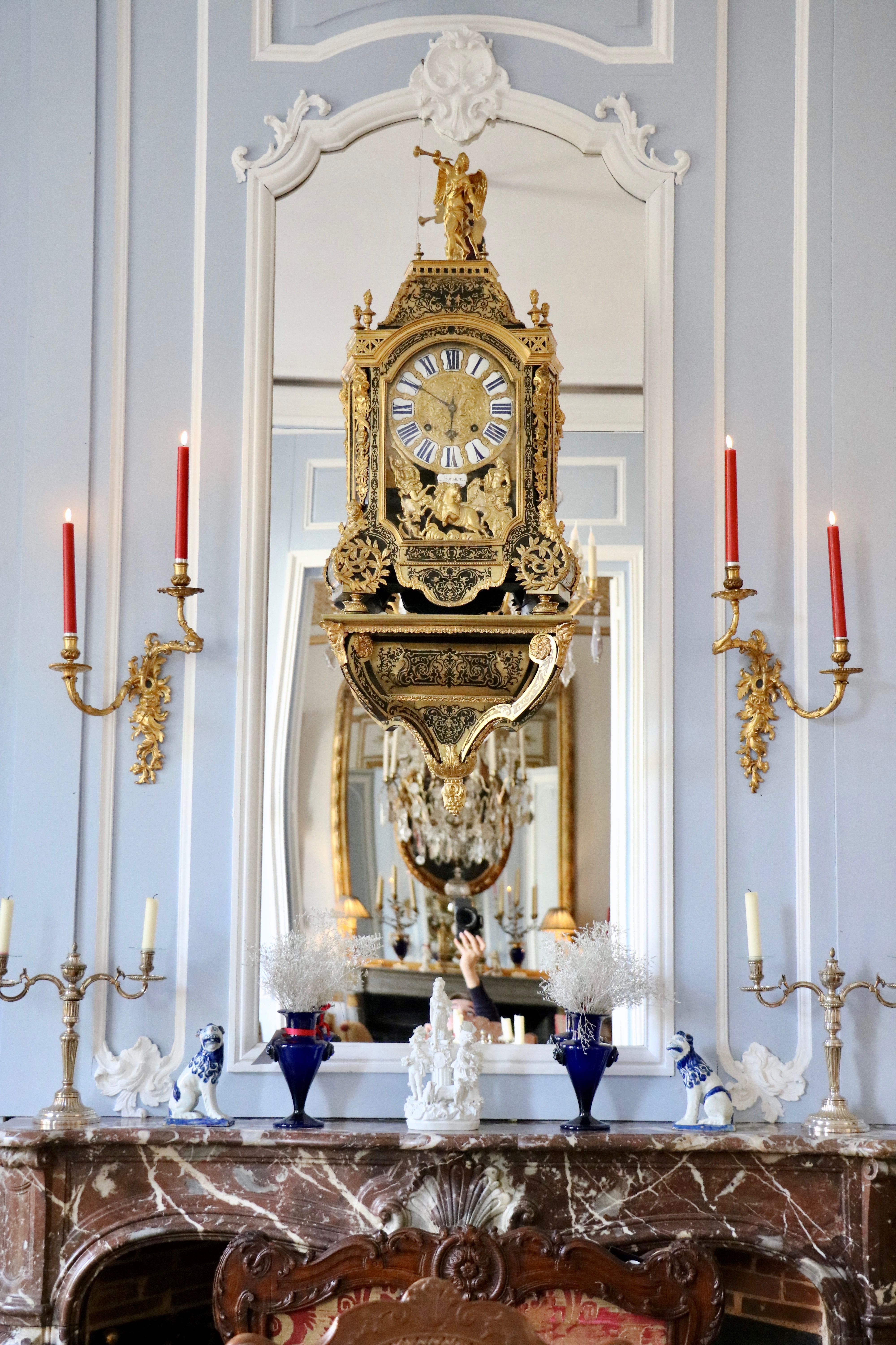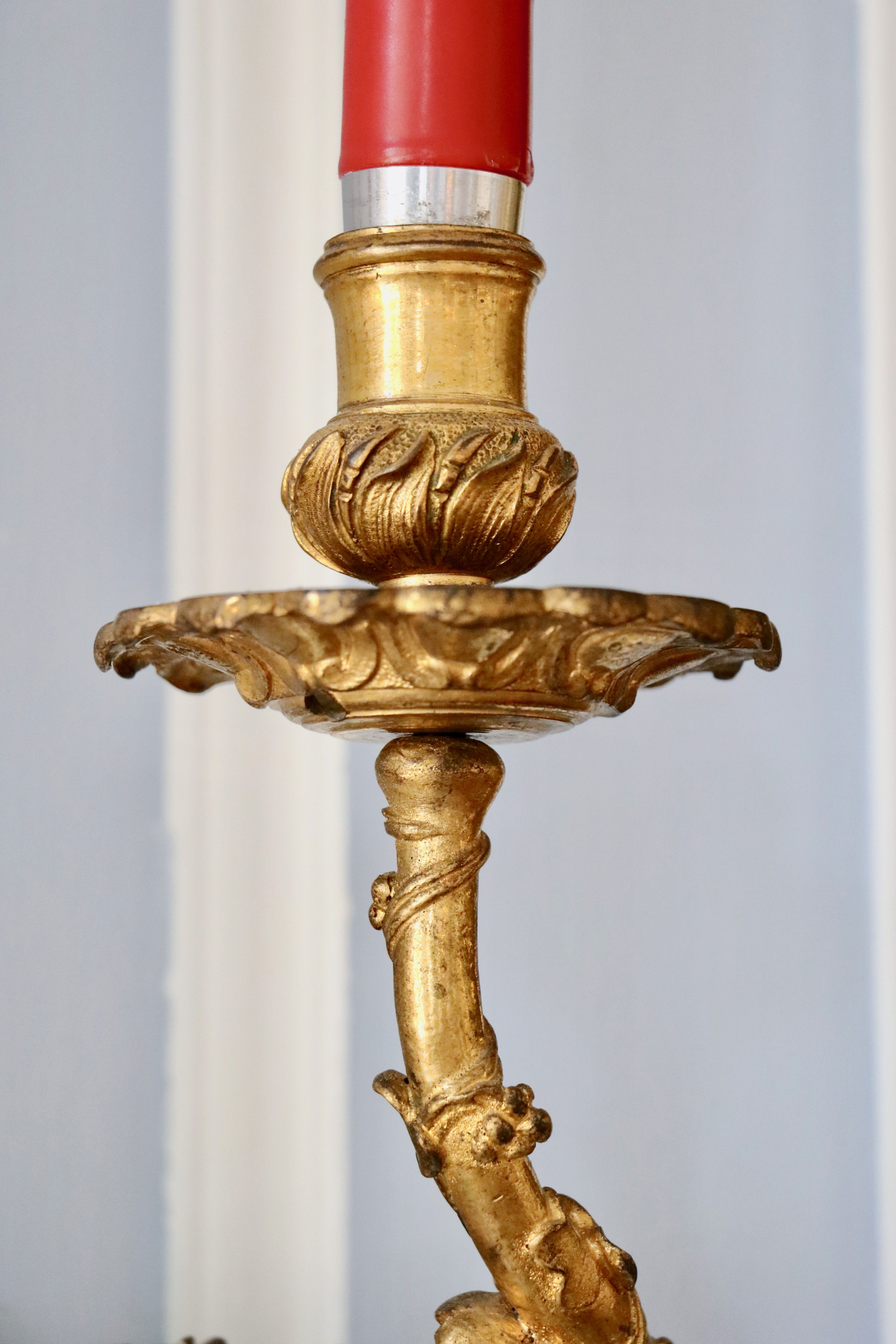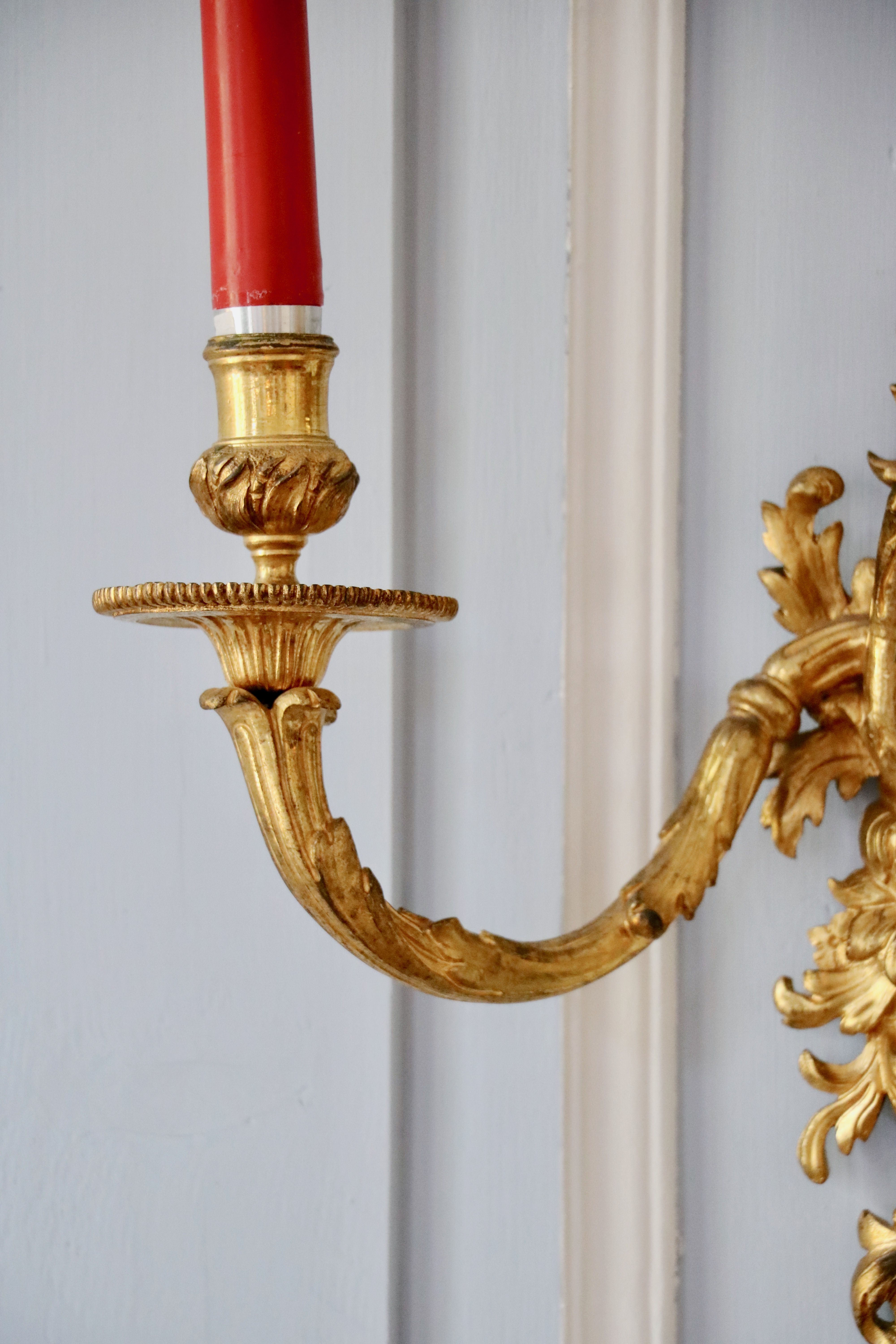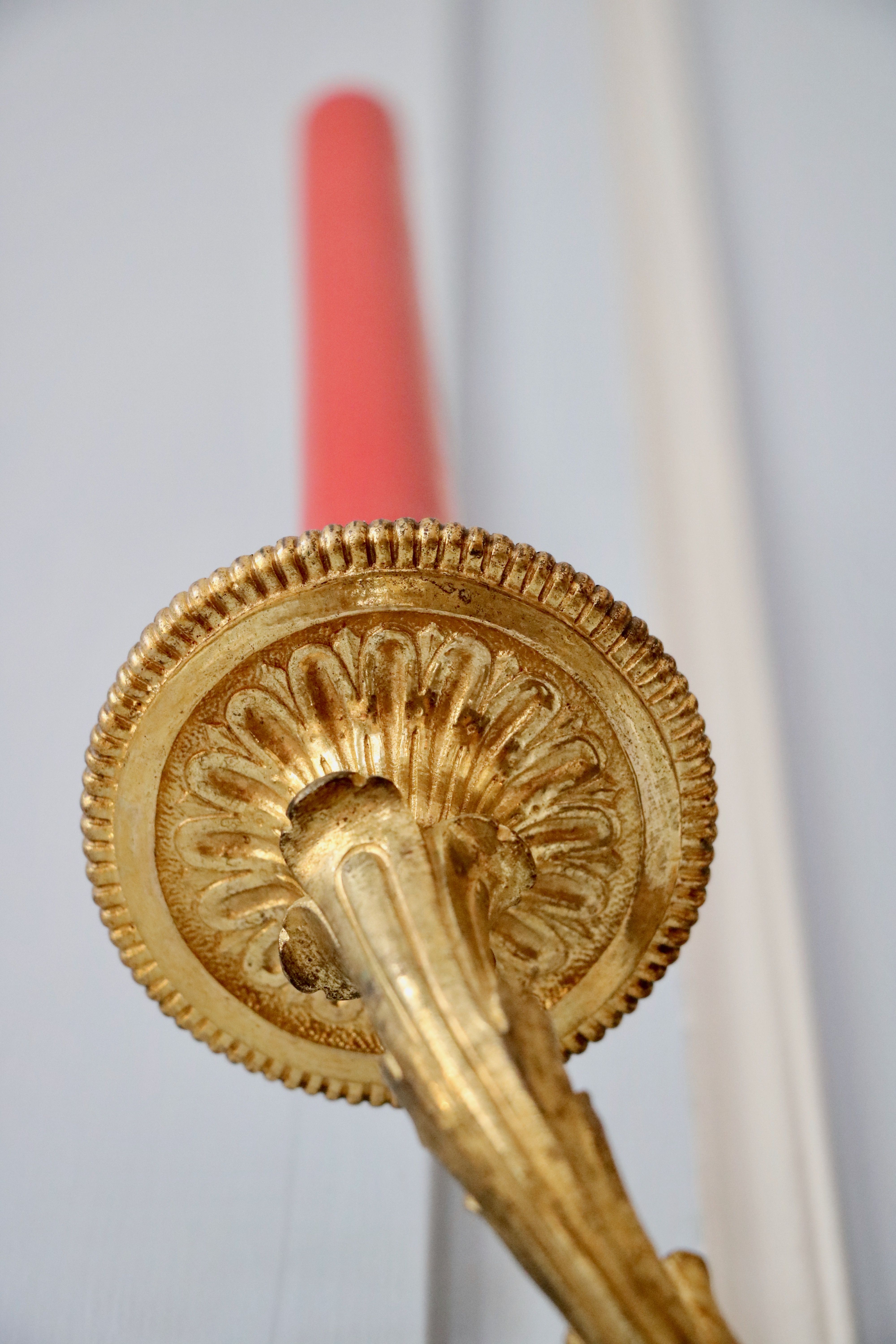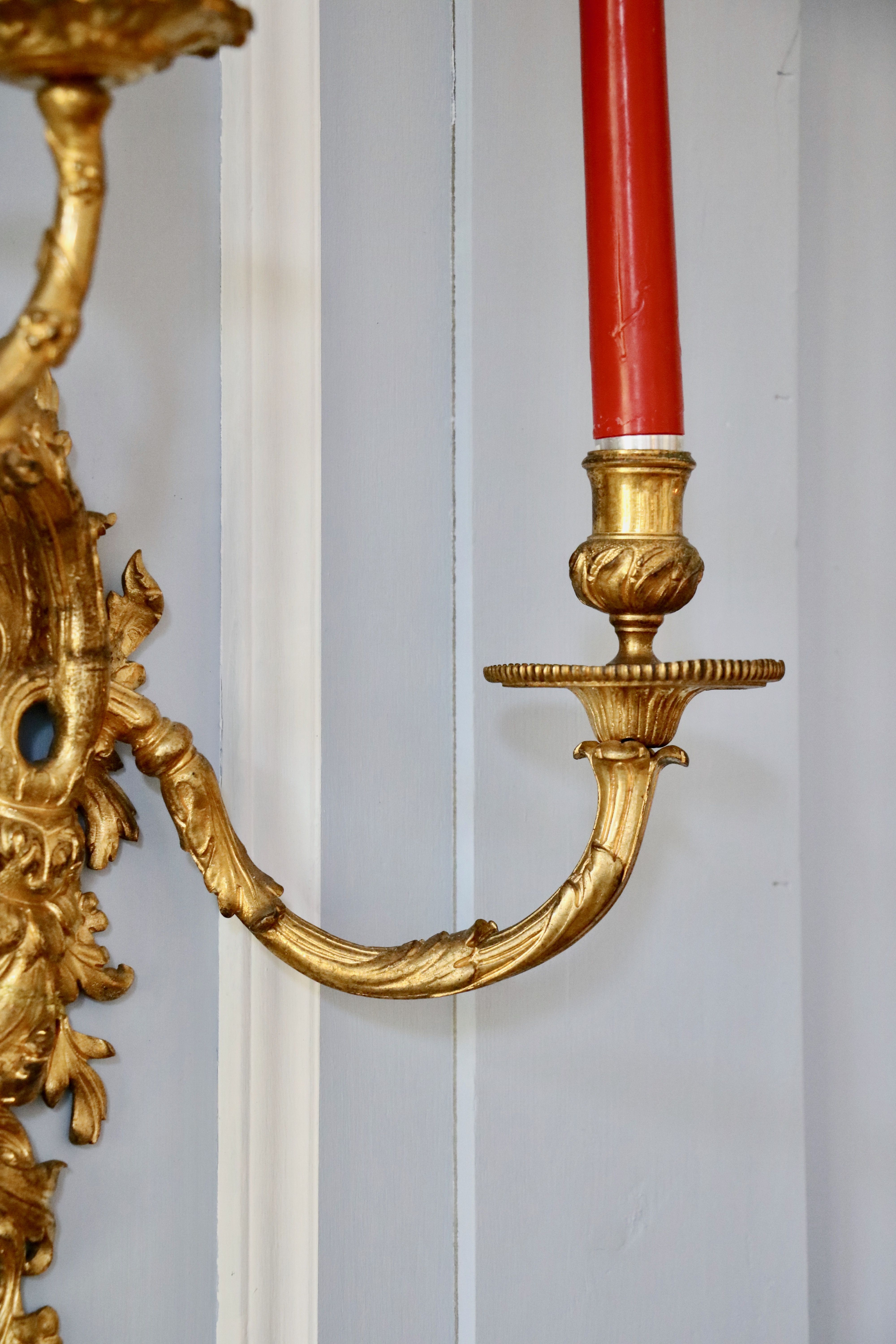 La paire d’appliques de notre étude peut être rapprochée des modèles d’André-Charles Boulle qui sont restés à l’état de projet ou qui sont aujourd’hui non répertoriés, et qui nous sont parvenus grâce aux dessins du célèbre ébéniste. Ces planches sont un témoignage très précieux pour le maître, car aucun ébéniste n’avait publié un corpus de ses créations et de ses projets. Parmi ces planches, retenons la numéro 8, puisque le maître y a représenté des appliques ainsi que des bras « de grands cabinets et des bras pour cheminée » qui font écho à notre paire. Cette planche fut commandée par Pierre-Jean Mariette qui les publie vers 1707 dans un ouvrage intitulé « Nouveaux dessins de meubles et ouvrages de bronze et de marqueterie inventés et gravés par André-Charles Boulle ». Nous retrouvons des appliques avec une composition qui s’en rapproche au J. Paul Getty Museum à Malibu, ainsi qu’au Musée du Louvre. Un détail nous frappe dans la composition de ces appliques : les bobèches sont différentes sur les deux bras, il s’agit d’un élément typique de sa production comme nous pouvons le remarquer sur une paire d’appliques reproduite dans le livre « André-Charles Boulle - un nouveau style pour l’Europe » écrit sous la direction de Jean Nérée Ronfort (pages 272-273) et aujourd’hui conservé au Musée des Arts décoratifs. Fait rare qui mérite d’être souligné, André-Charles Boulle fond ses propres bronzes. C’est une exception dans le système corporatif très cloisonné de l’Ancien Régime, où les menuisiers ne peuvent en aucun cas sculpter leurs sièges, ni même les tapissiers monter leur propres bâtis. Or André-Charles Boulle porte bien le titre d’ « Ebéniste, scizeleur et marqueteur ordinaire du roy ». Jouissant de la protection royale, les jurés et maîtres ne peuvent pénétrer à tout venant en ses ateliers comme ils sont habilités à le faire ailleurs. Sa familiarité avec le travail du bronze lui permet donc de proposer non seulement des meubles richement ornés, mais également, comme l’objet de notre étude l’atteste, des éléments décoratifs entièrement en bronze.