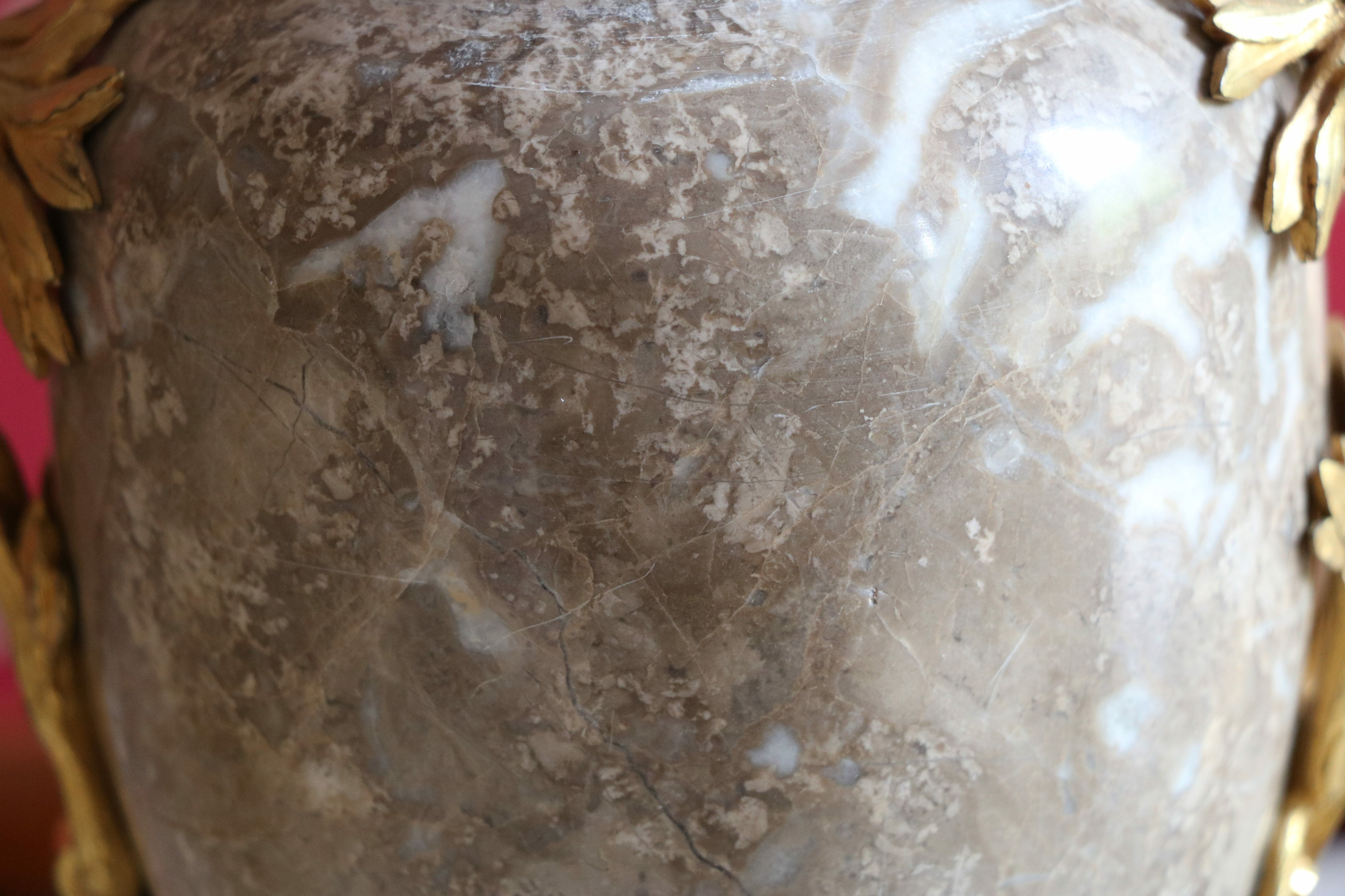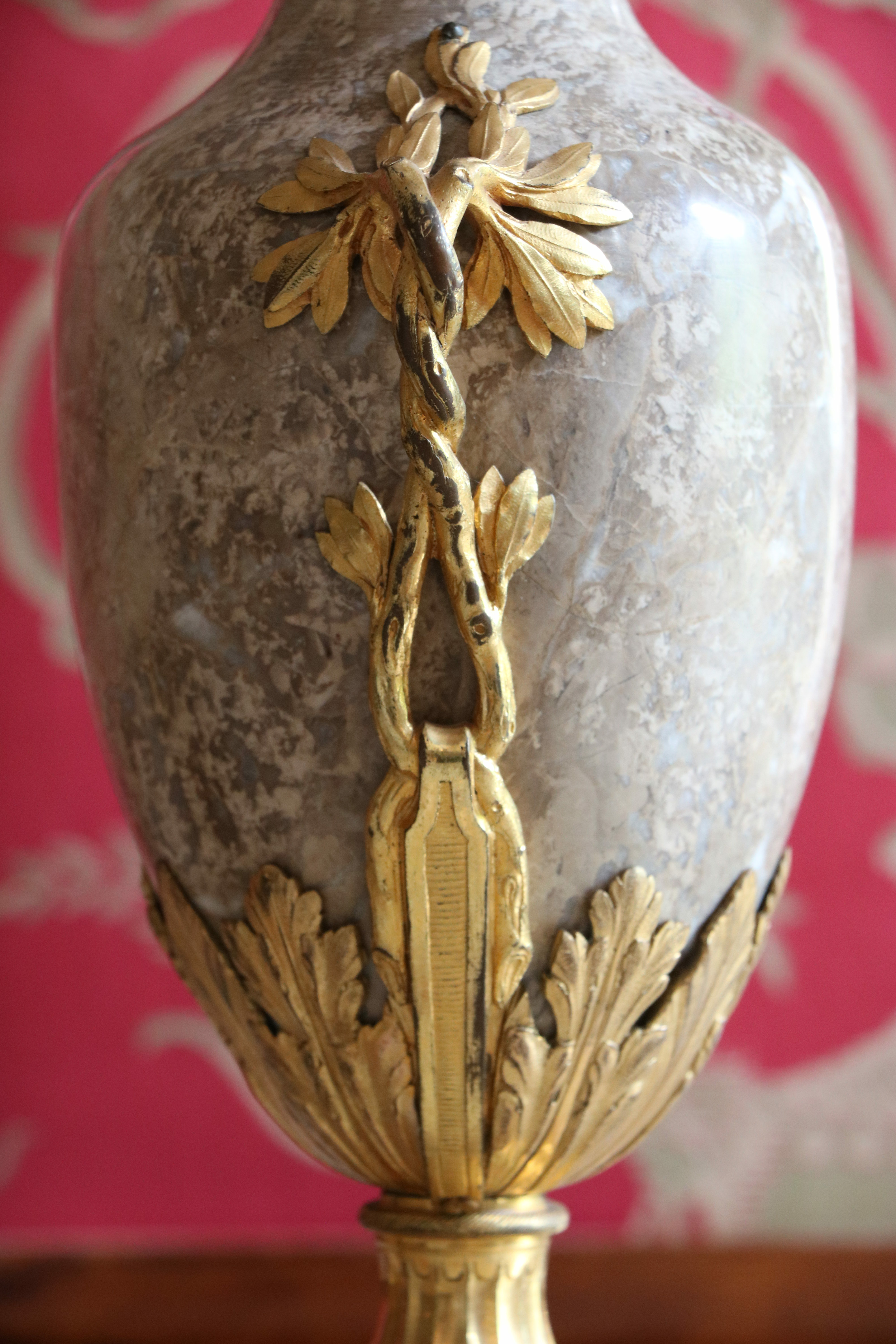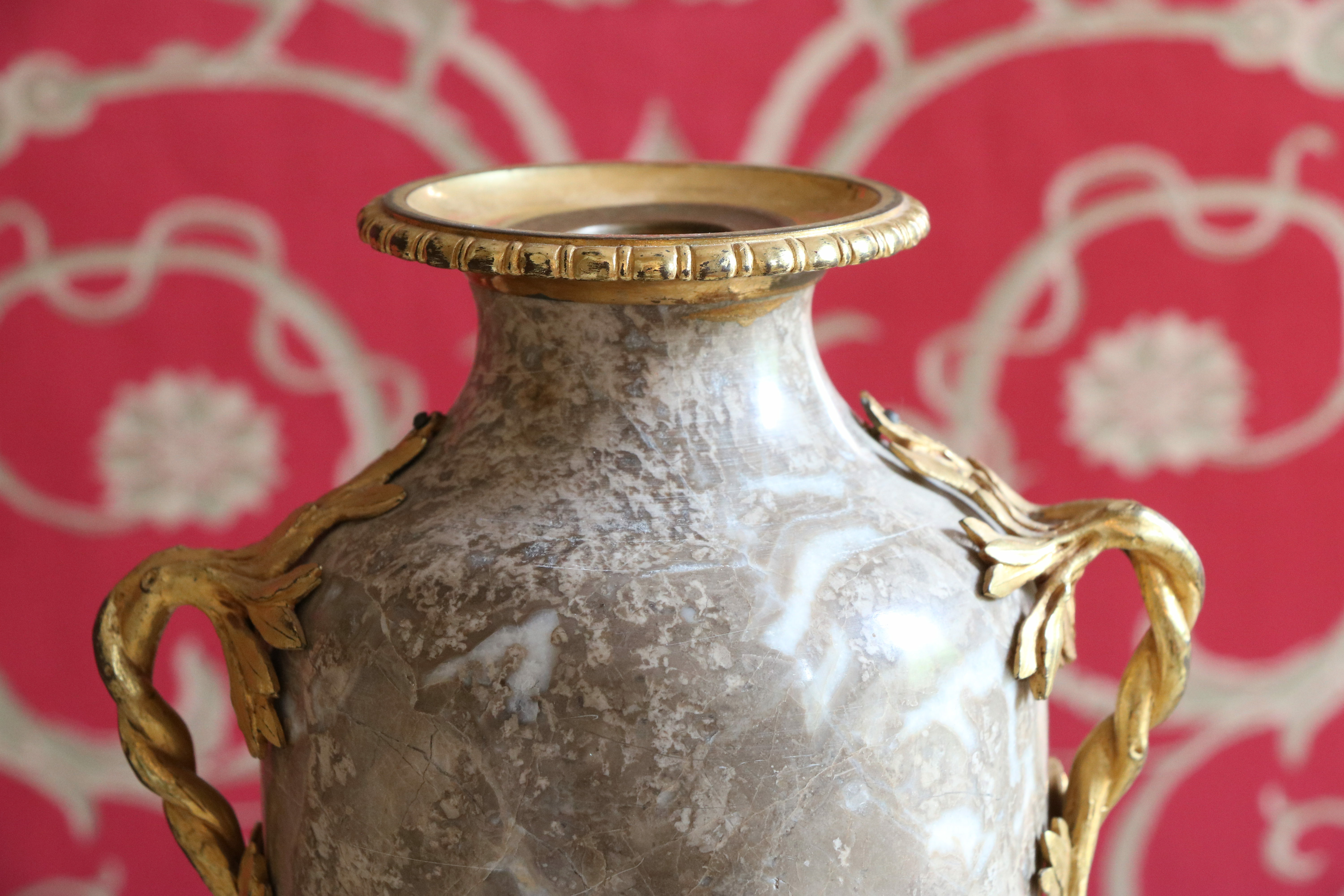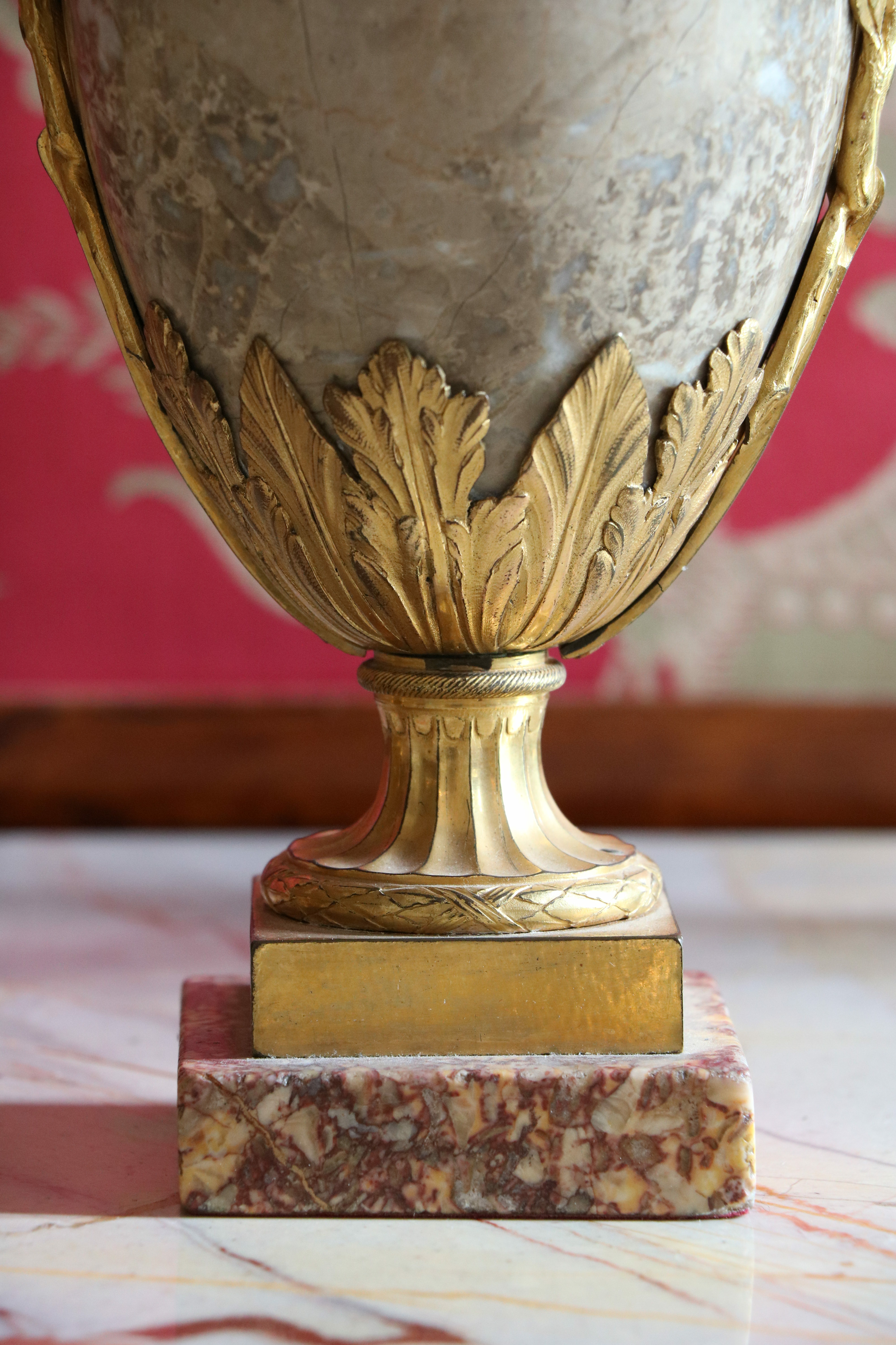 Paire de vases d'époque Louis XVI, en marbre Napoléon grand mélange, avec monture en bronze doré