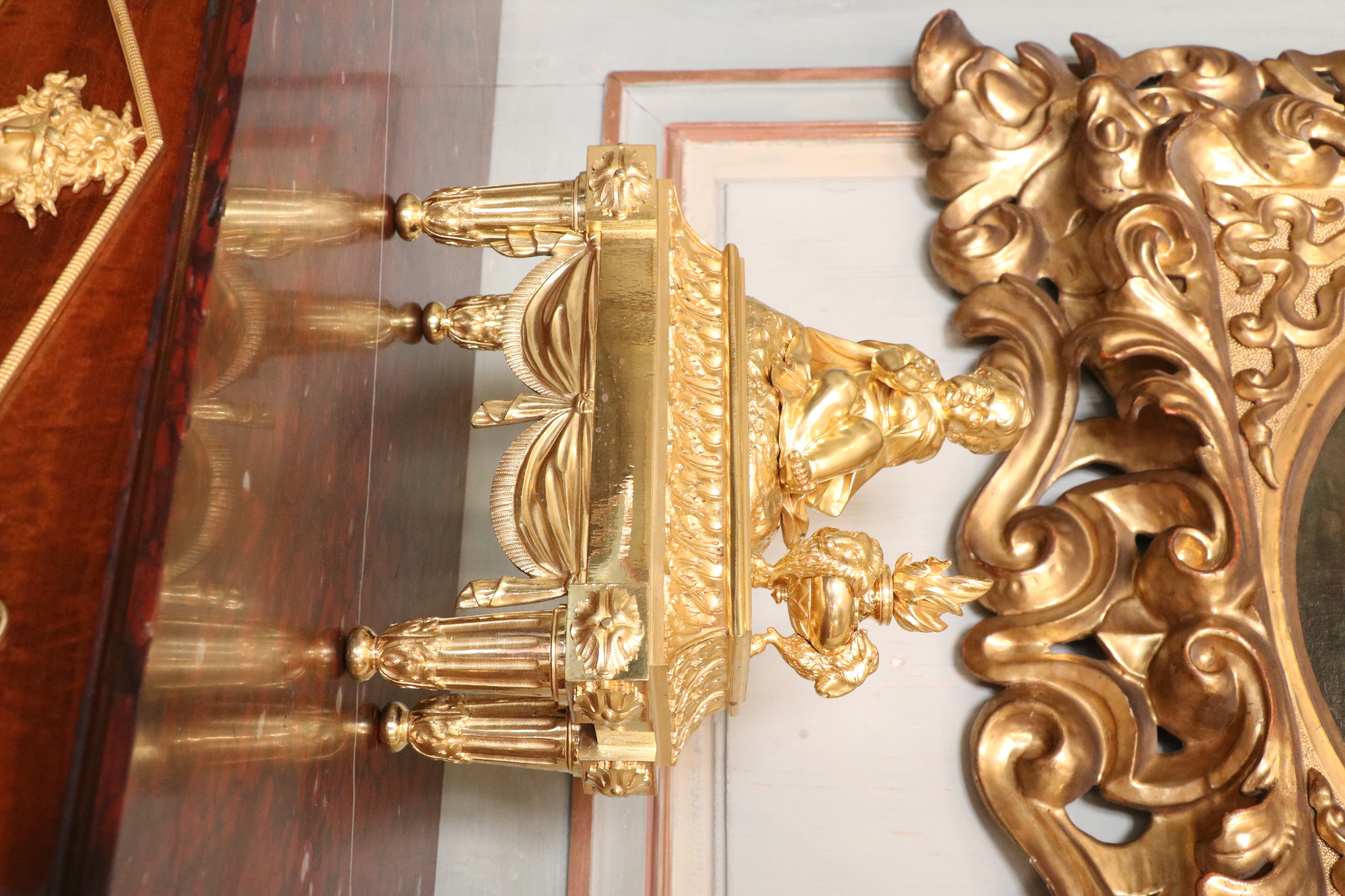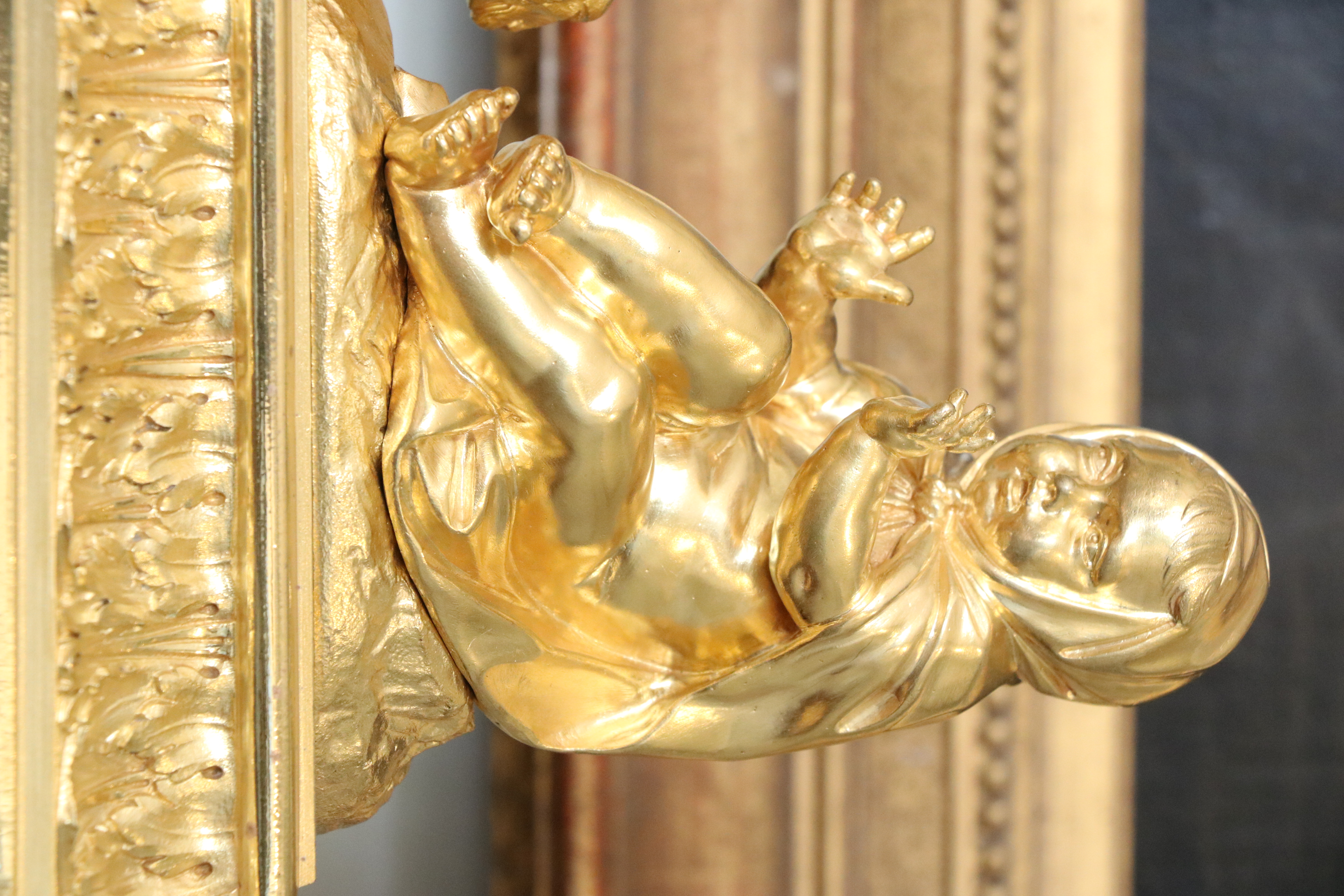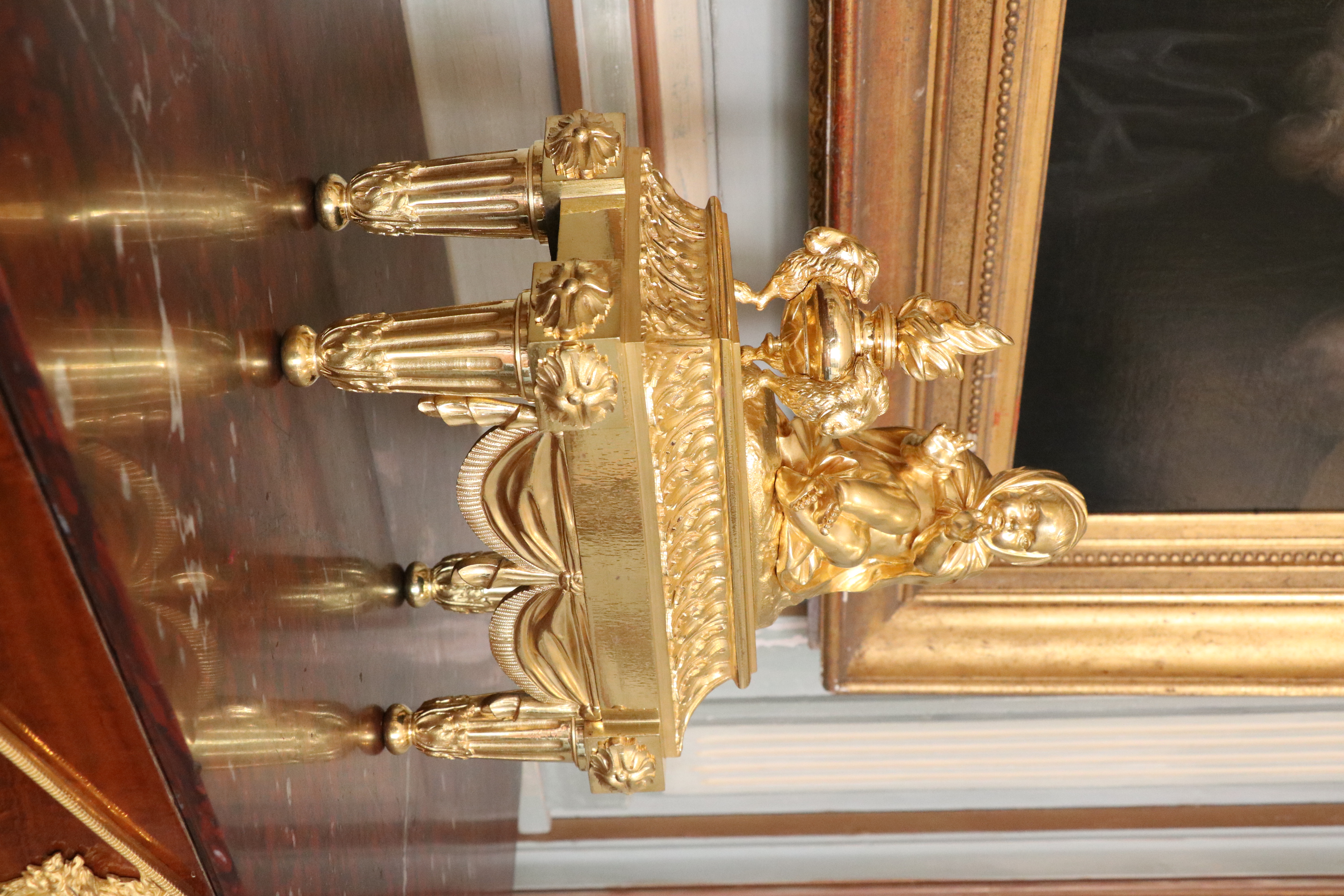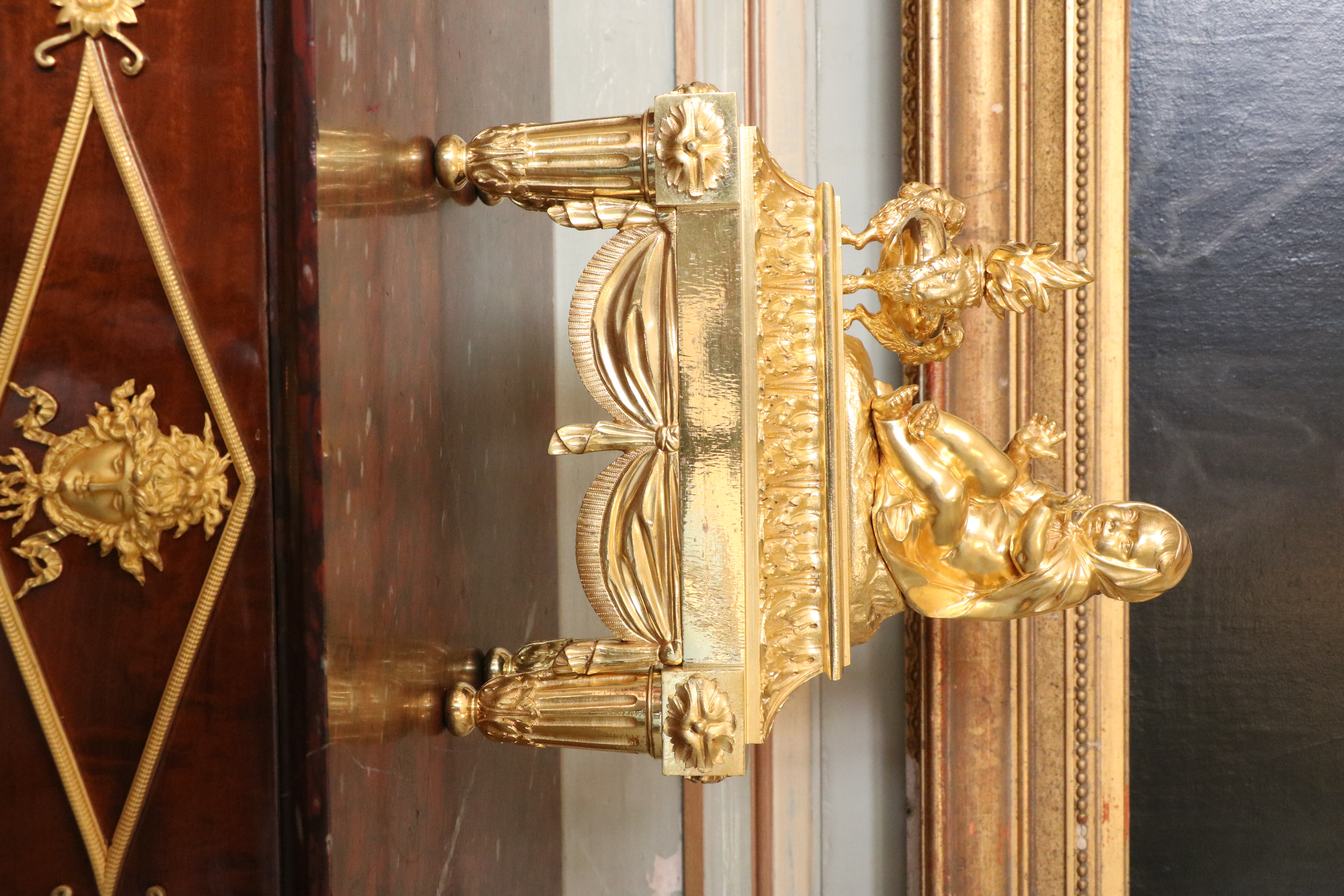 Le thème traité dans cette paire de chenets, d'une grande finesse d'exécution, témoigne de l'imagination fertile des bronziers qui placèrent fréquemment des enfants ou amours sur les objets d'ameublement, pendules, candélabres, bougeoirs ou chenets, donnant ainsi un sentiment de légèreté et de douceur à leurs oeuvres. Ici, les enfants se réchauffent grâce à la source de chaleur émise par le pot-à- feu, renvoyant évidemment à la fonction principale de l’objet. On reconnait une base similaire sur une paire de chenets passée chez Sotheby’s le 18 juin 1994. Le sujet principal de nos chenets se retrouve quant à lui dans une paire passée à la vente du 15 spetmebre 2012 au Salon Castellane, à l'Hôtel le Bristol.