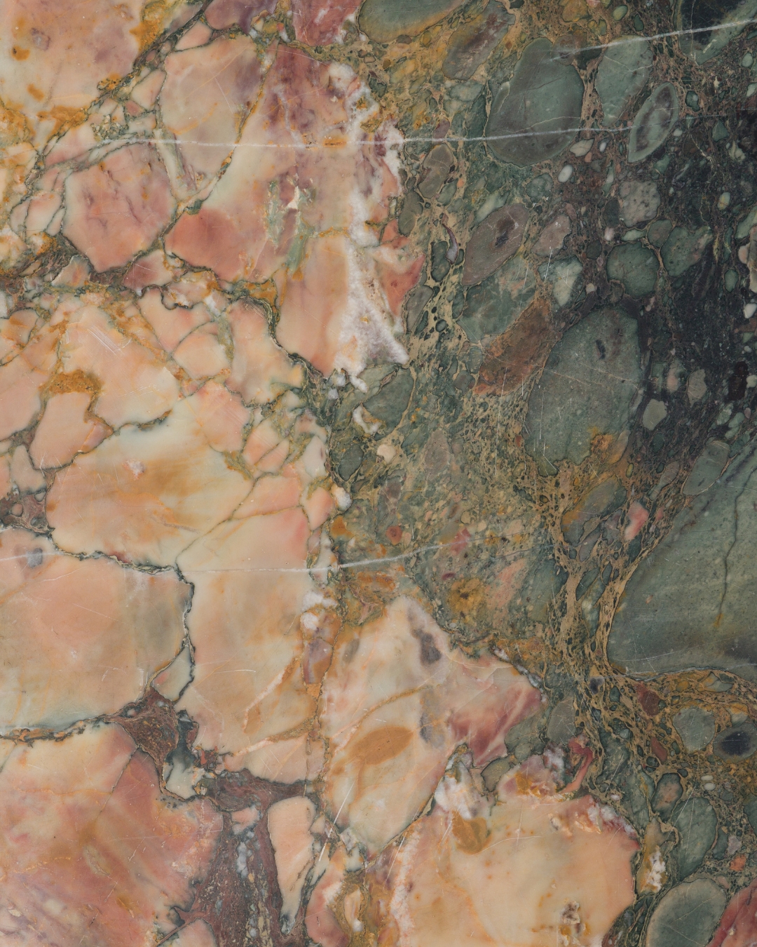 Paire de commodes en satiné, l’une ouvrant à deux tiroirs, l’autre à deux vantaux. Le dessus est en marbre brèche de Benou vert et repose sur des montants arrondis terminés par des pieds cambrés. La façade est marquée par un ressaut central. Les bronzes se caractérisent par une chute d’angle à l’antique et par des poignées en tores de lauriers. Epoque Transition Restaurations d’usage H.94 x L.135 x P. 60 cm