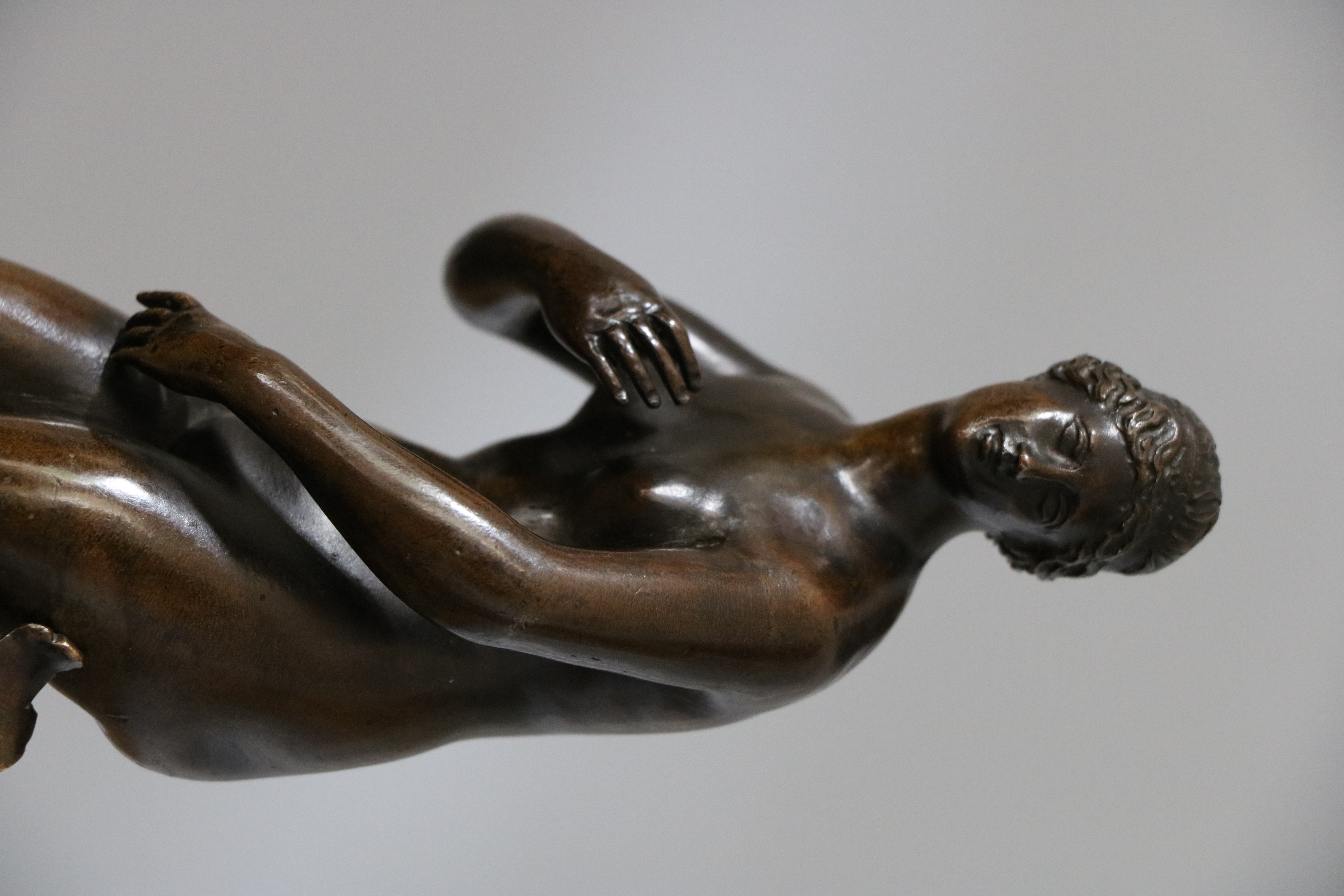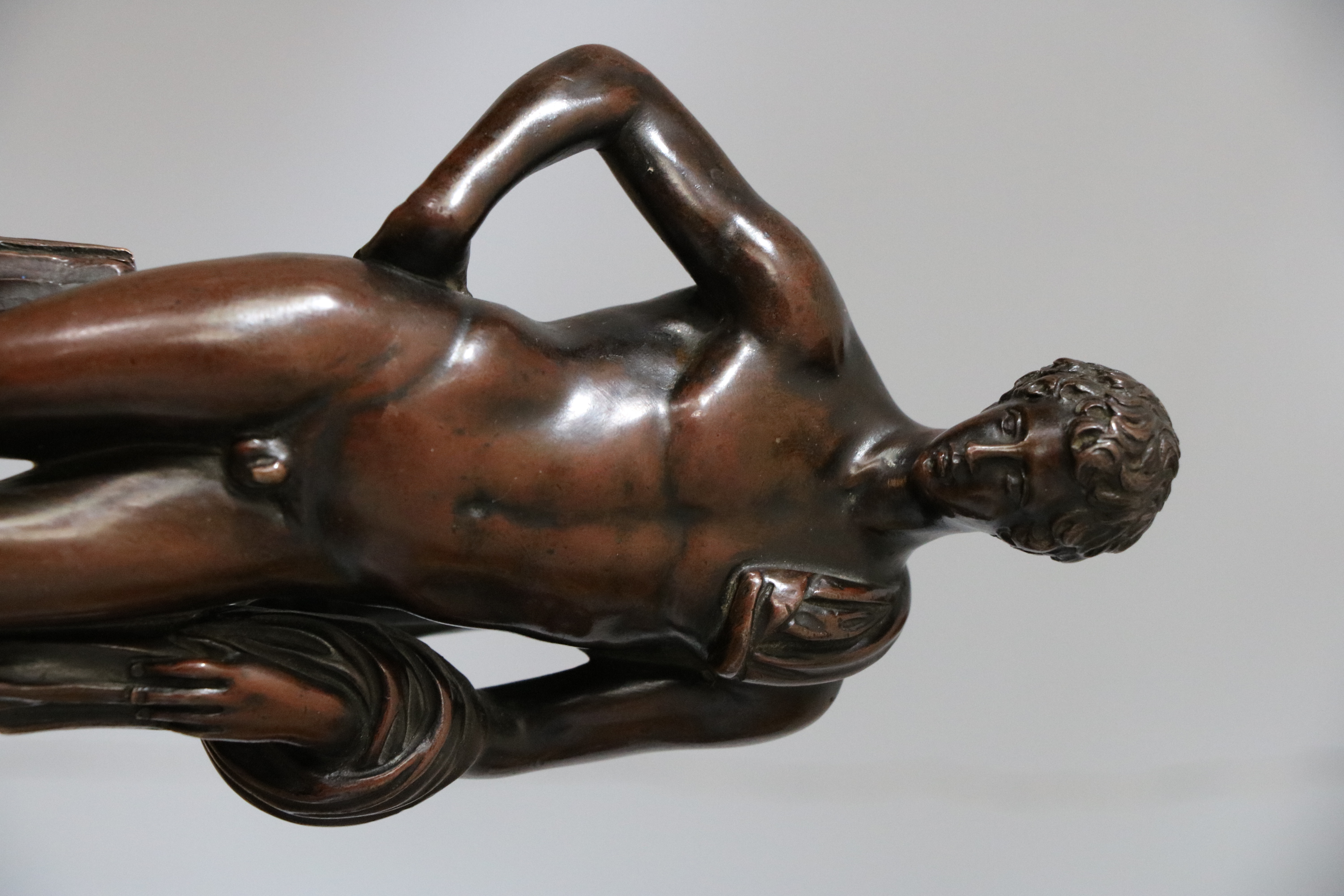 Paire de sculptures en bronze patiné figurant Vénus et Apollon sur des bases carrées et moulurées en bronze doré. Ecole française. H.26 cm avec la base. H.21 cm (Vénus) H. 22,5 cm (Apollon) XVIIIème siècle. Légères usures aux patines et aux dorures.