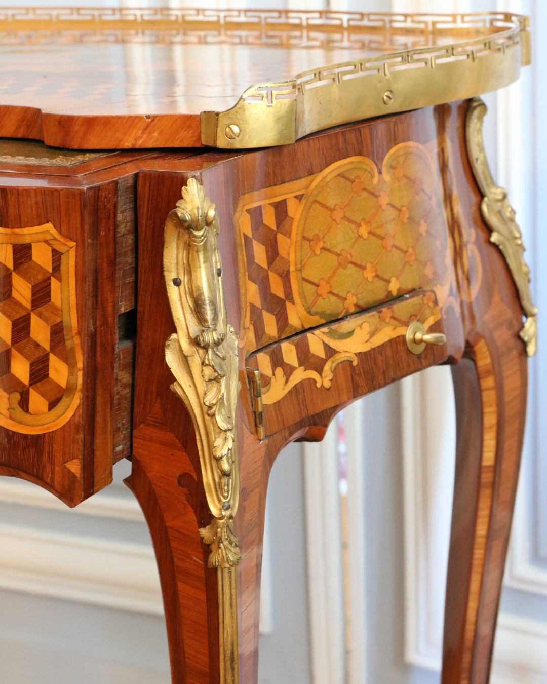 C'est au sein de ces derniers que se développèrent un luxueux mobilier où figurent notamment les tables à écrire dont on prête à la Marquise de Pompadour le rôle d'instigatrice quant au développement de l'attrait envers ce genre d'ameublement.
