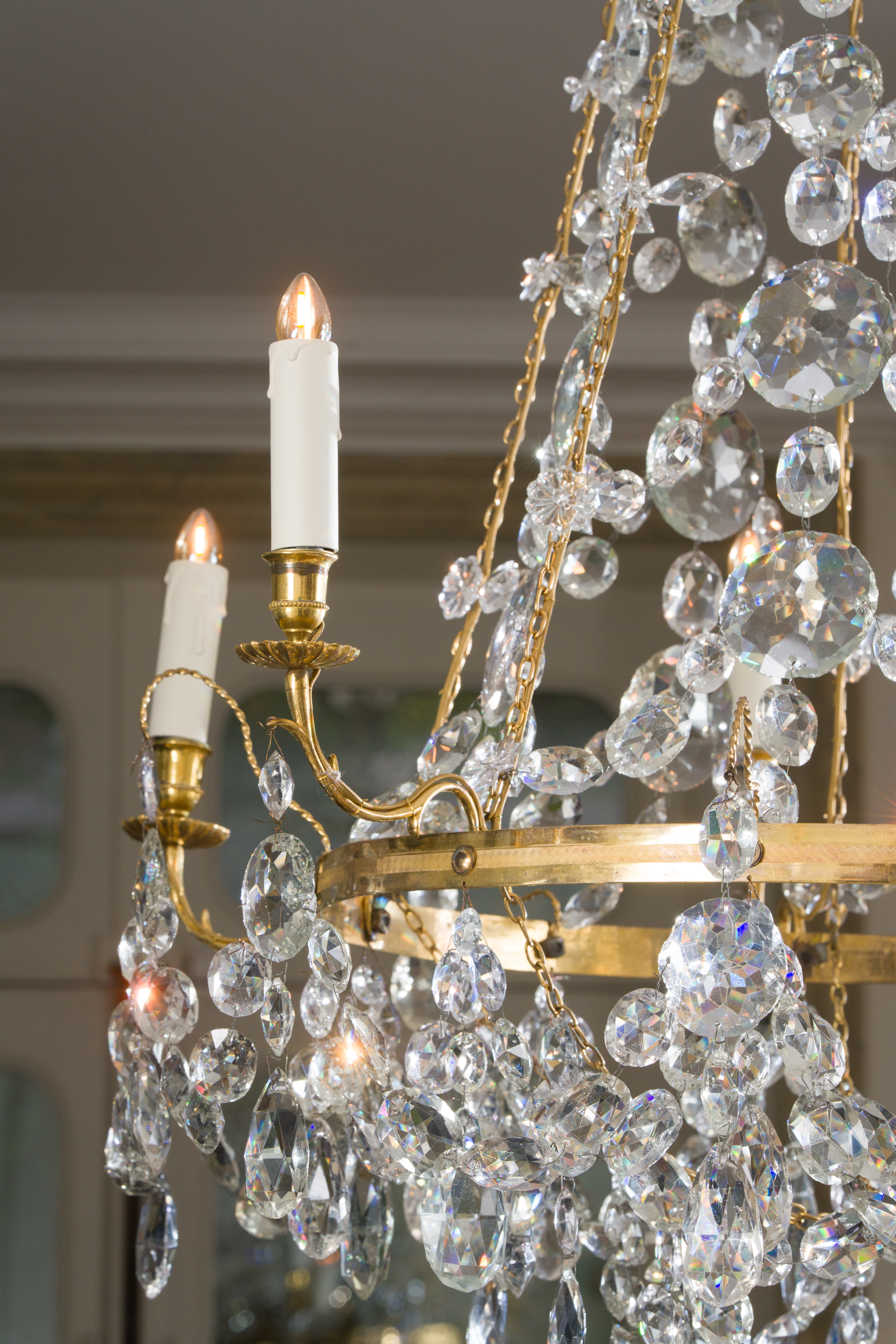 Lustre Louis XVI en cristal et bronze doré à six bras de lumière