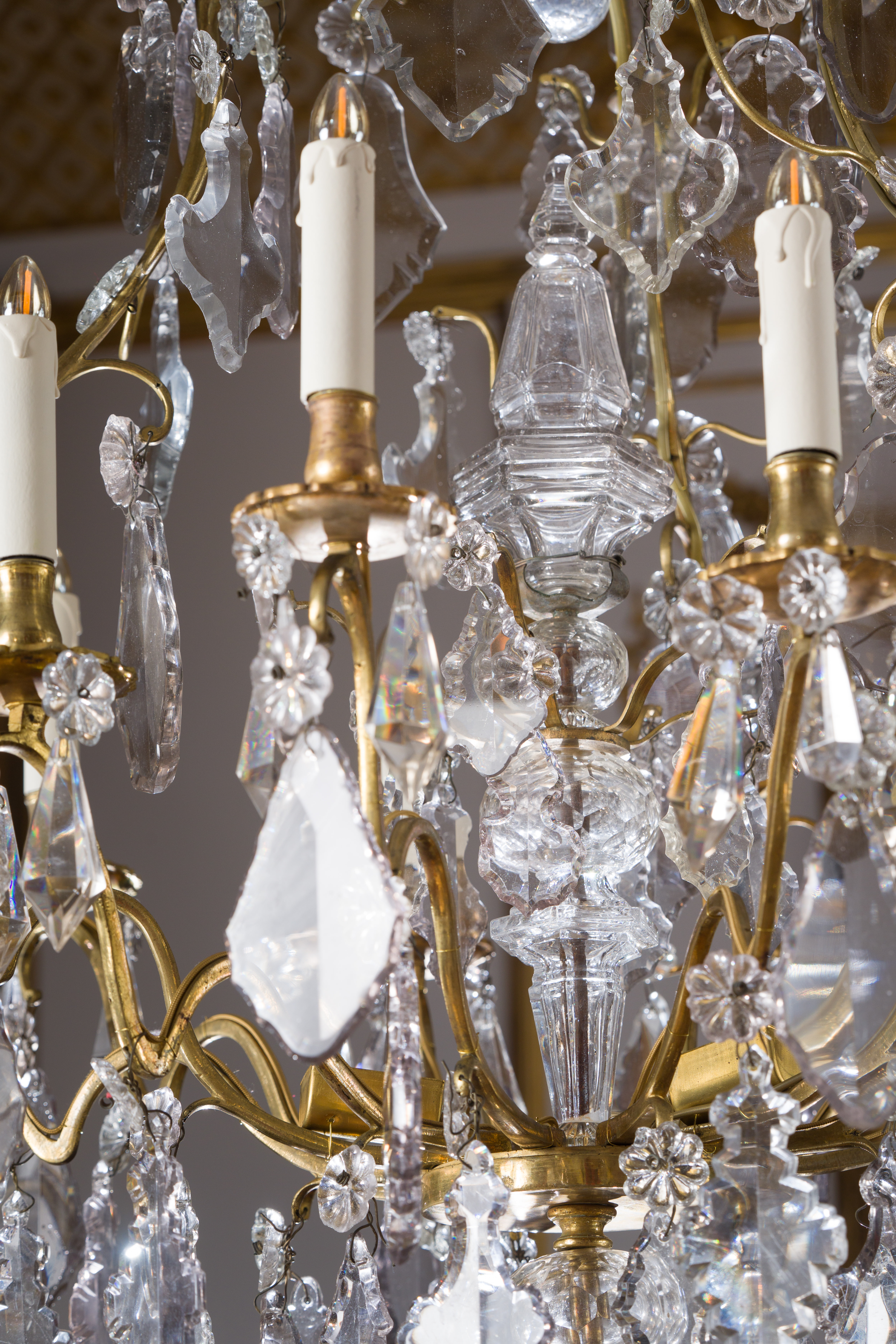 Lustre Louis XV en cristal et bronze doré à neuf bras de lumière