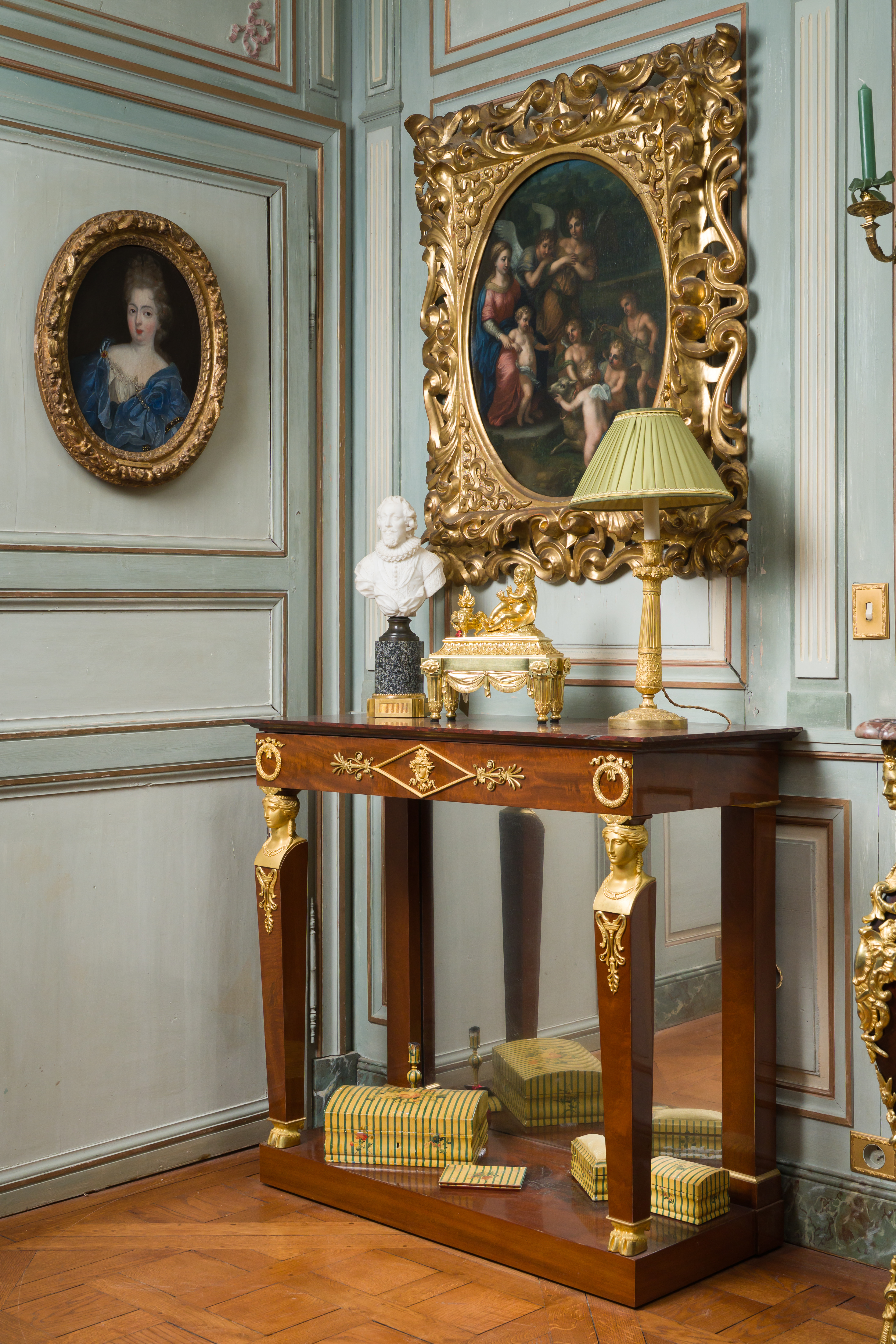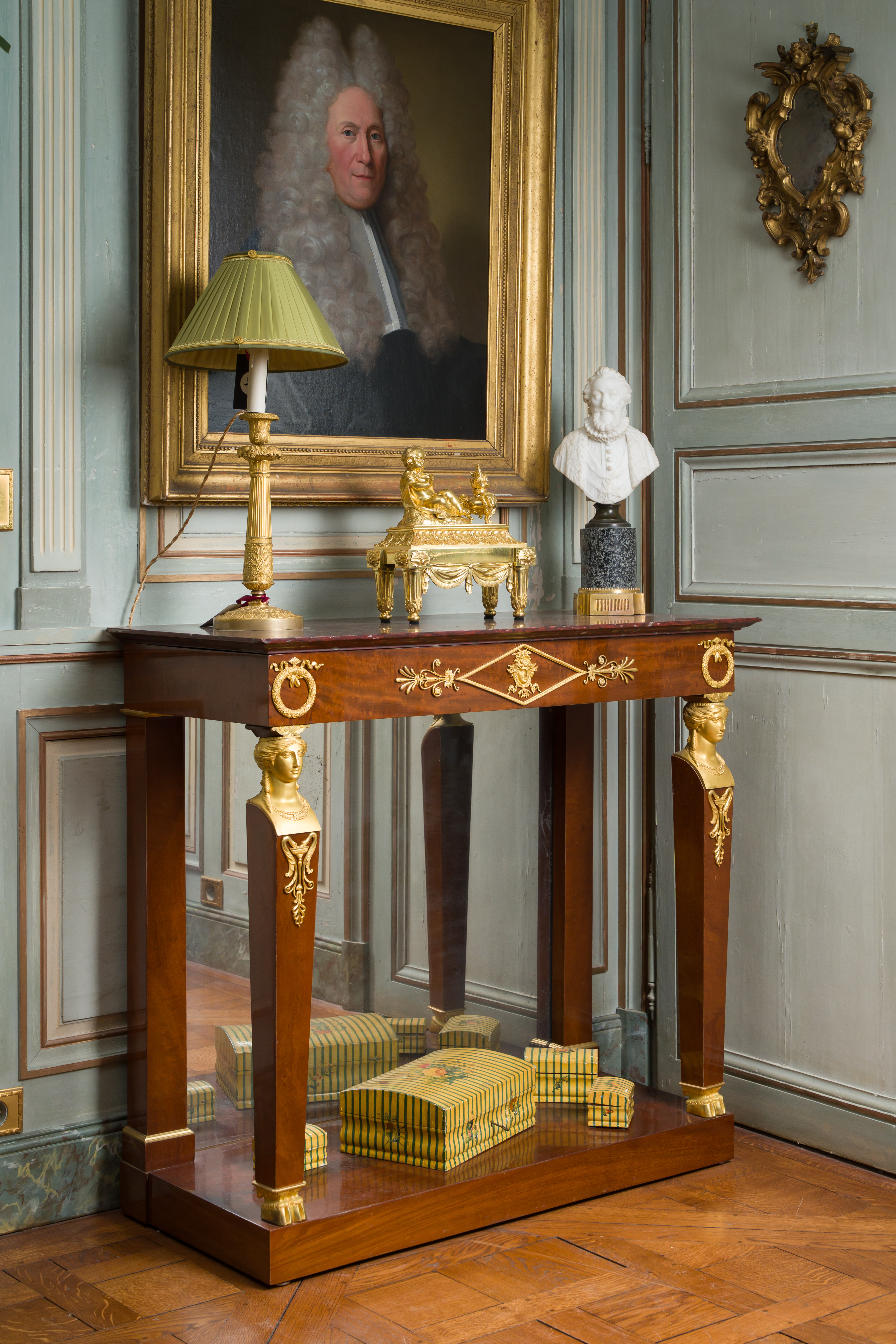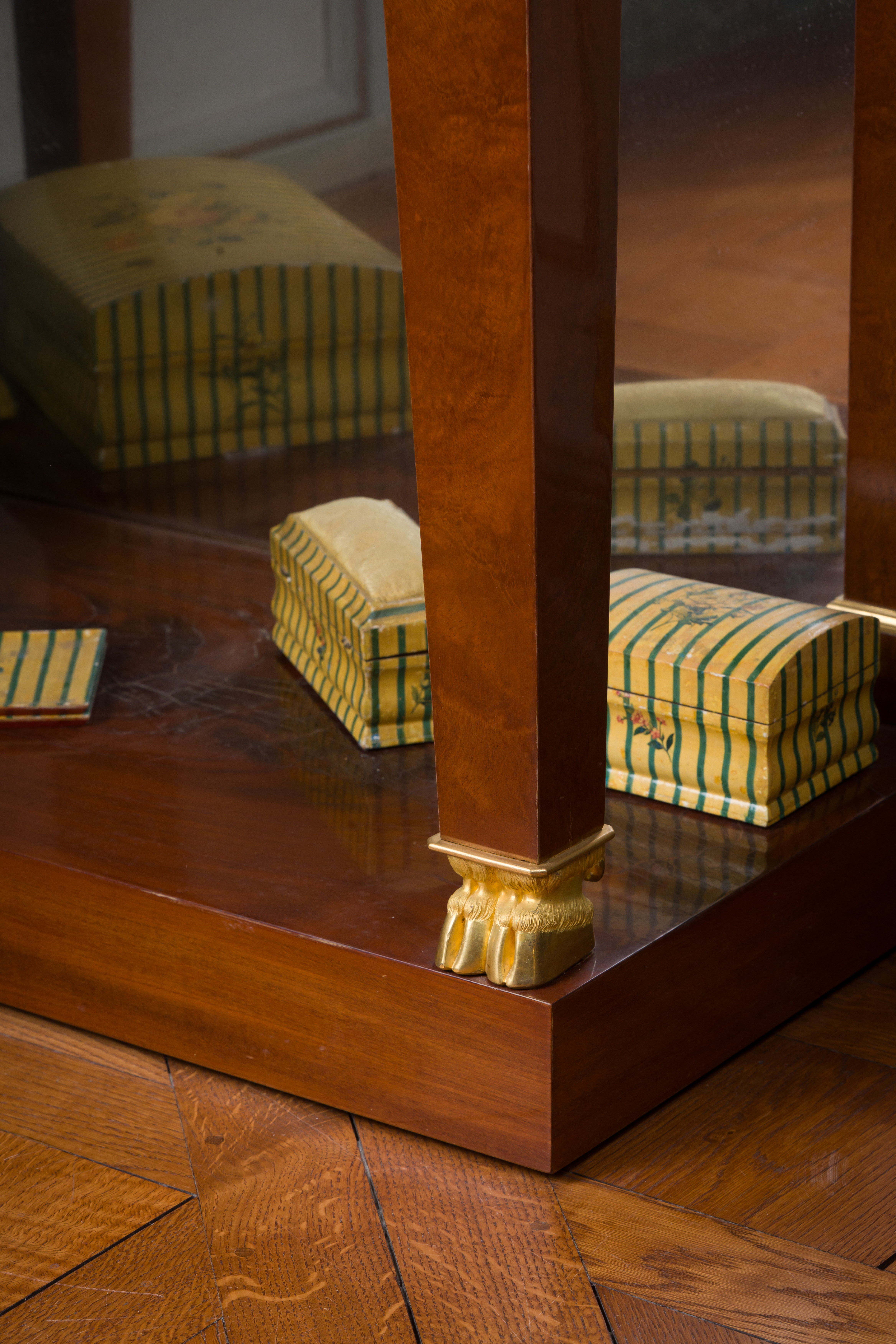 Bibliographie : U. Leben, Molitor, ébéniste de Louis XVI à Louis XVIII, Paris, 1992, p. 99 et n°88, p. 194. Exposition : Bernard Molitor (1755-1833), cat. exp., Luxembourg, 1995, n°37, p. 96 et p. 221. Ulrich Leben, auteur de l’ouvrage de référence et commissaire de l’exposition sur Bernard Molitor, situe chronologiquement ces deux tables console durant la période du Consulat (1799-1804), attestant ainsi le caractère très précurseur de l’ébéniste qui s’illustre ici dans un style annonciateur de l’époque Empire.