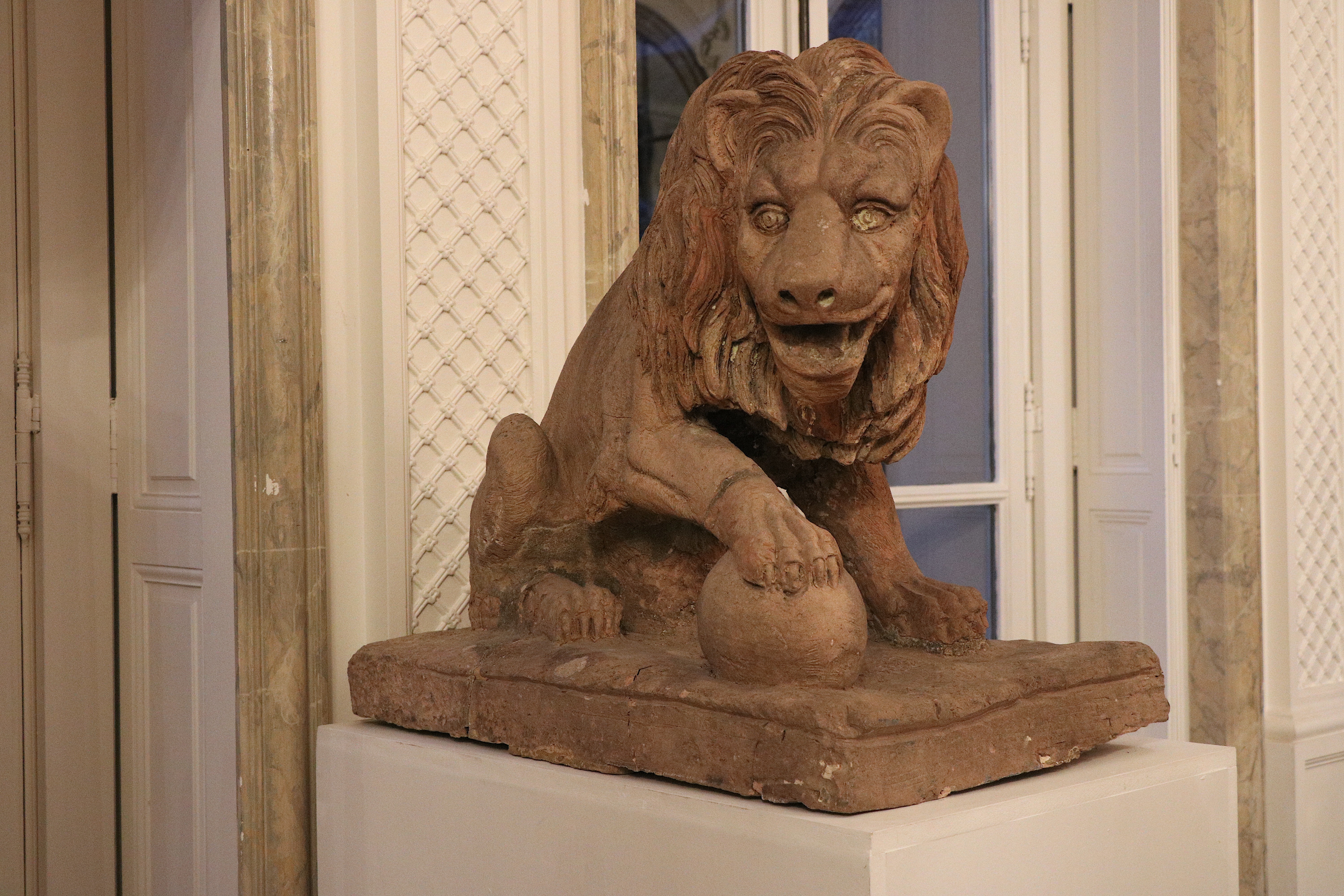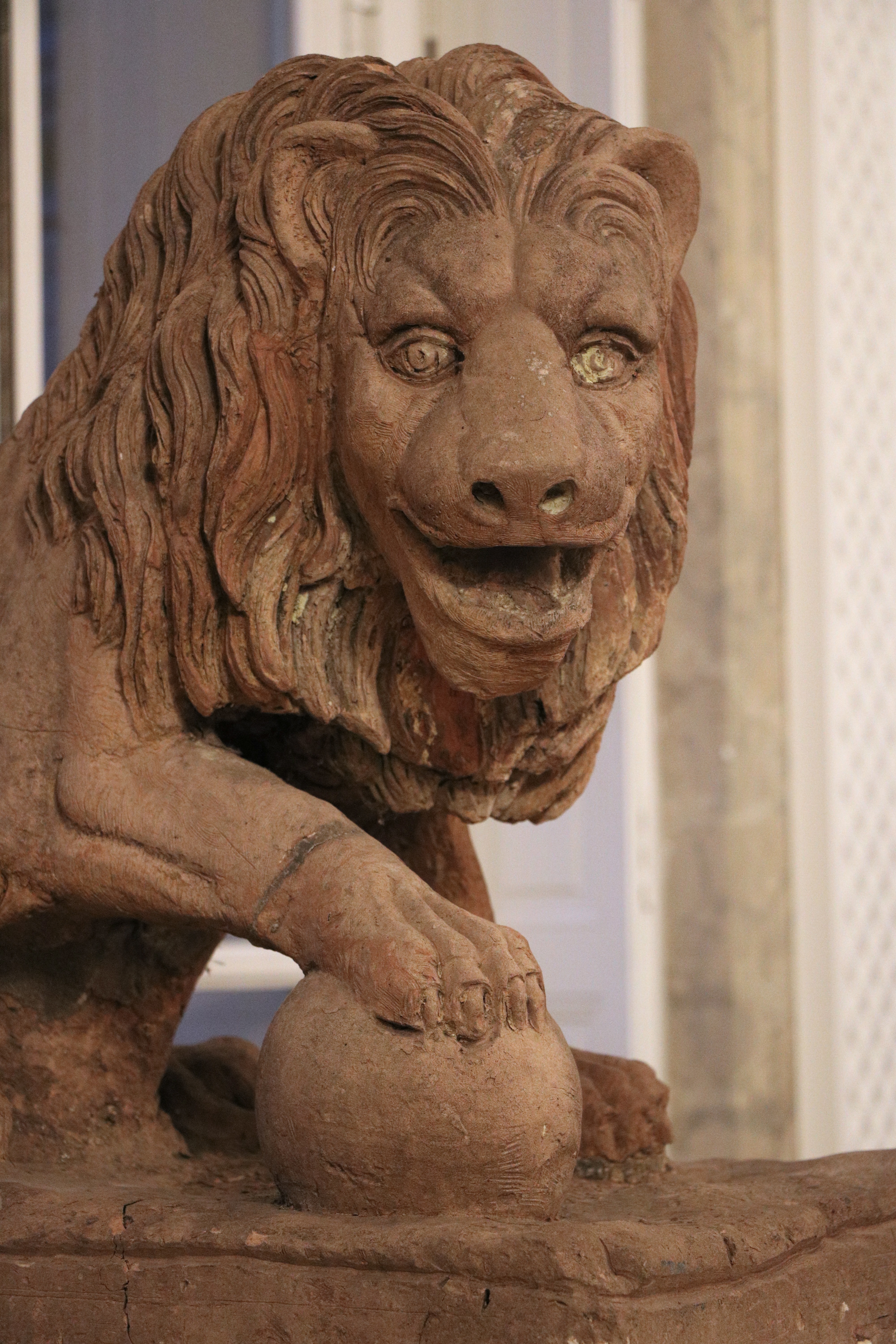 Paire de lions en terre cuite